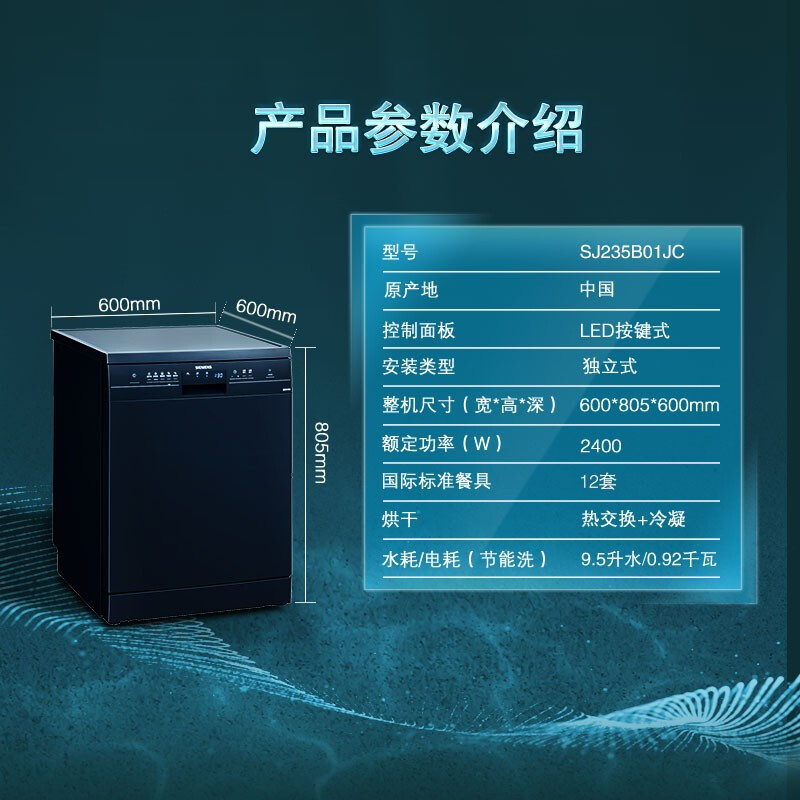 SIEMENS/西门子 SJ235W01JC 双重烘干5D喷淋12套独立式除菌洗碗机