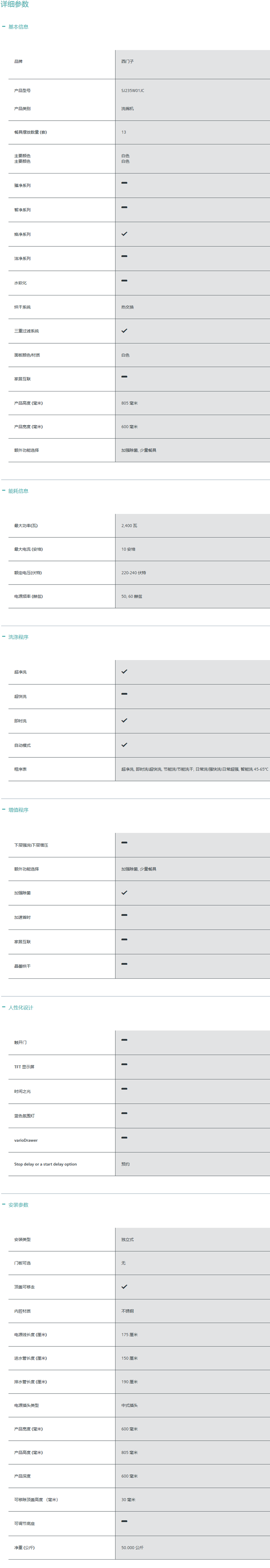 商品名称:SIEMENS/西门子 SJ235W01JC 双重烘干5D喷淋12套独立式除菌洗碗机