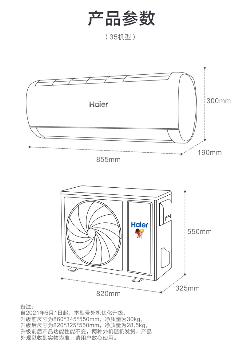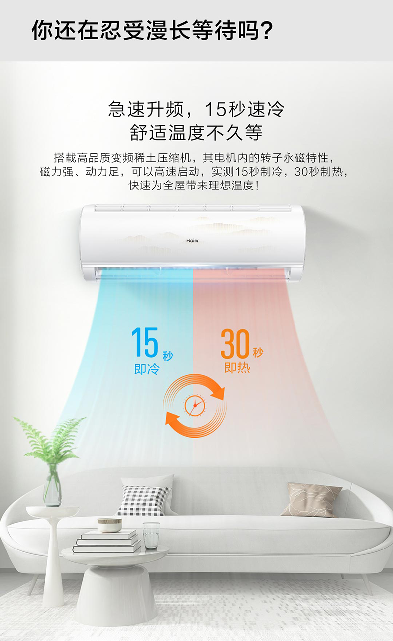 商品名称:【新一级变频】海尔空调挂机1.5/1匹P壁挂式冷暖两用节能家用BHA