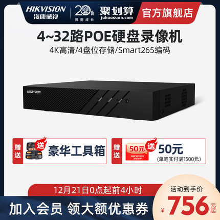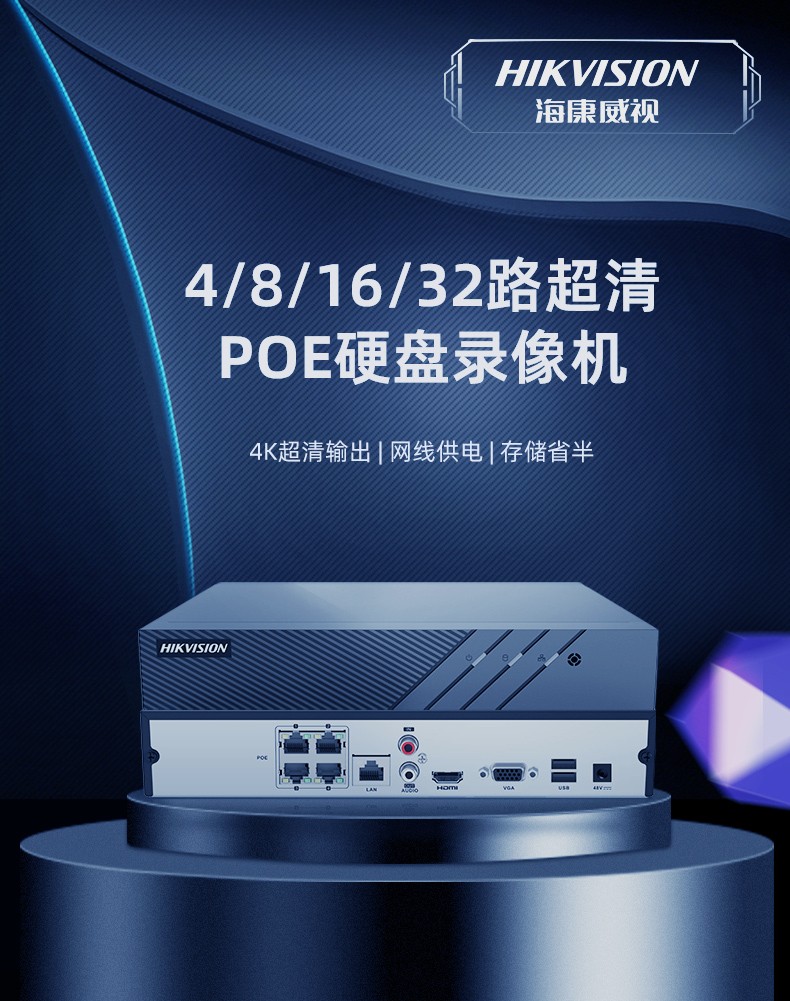 海康威视硬盘录像机4 8 16路poe网络NVR监控主机DS-7804N-K1/4P