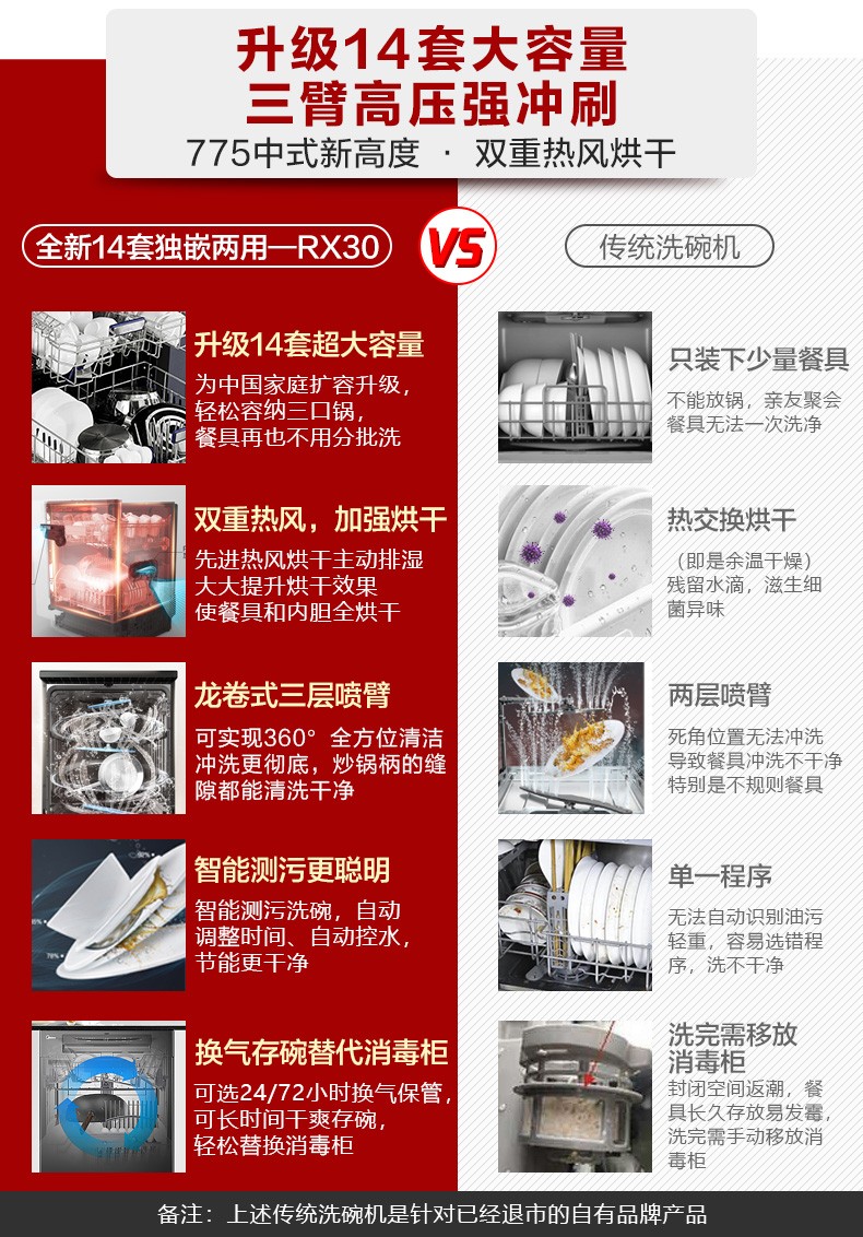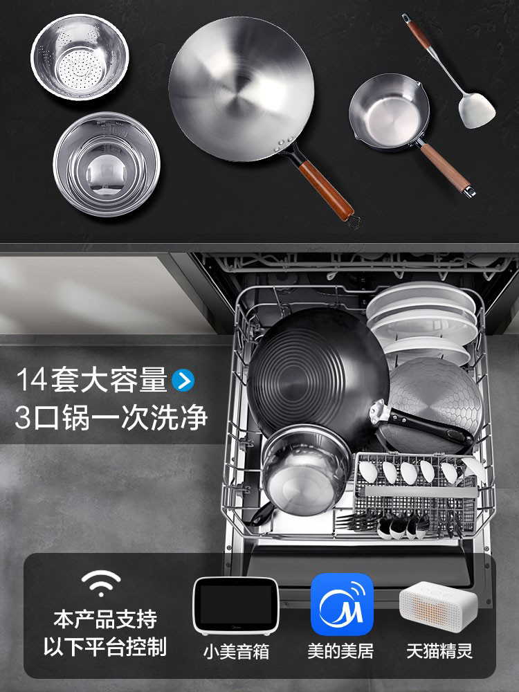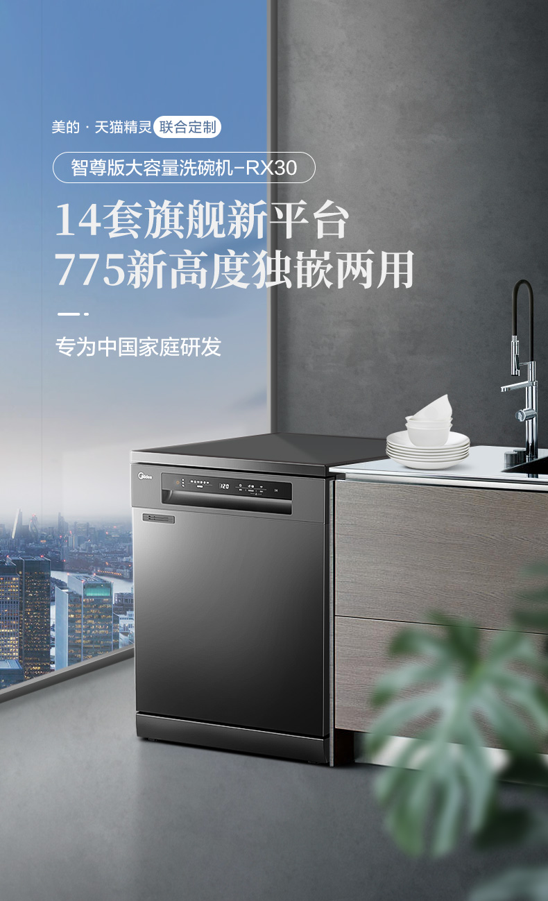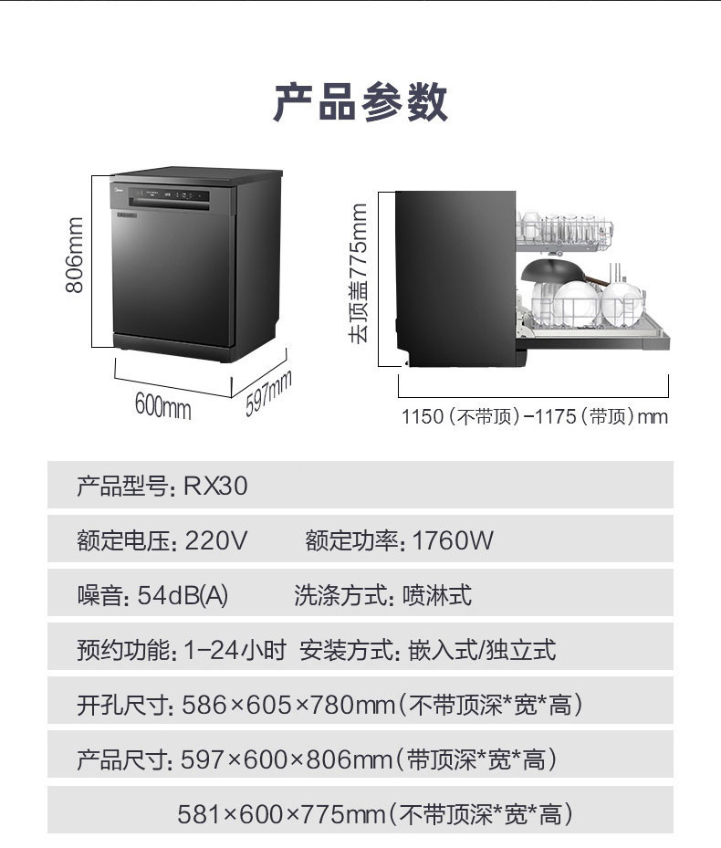 商品名称:美的RX30洗碗机全自动家用13+1套独嵌两用消毒热风烘干智能一体机