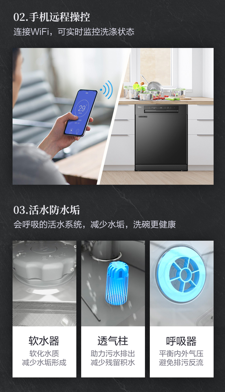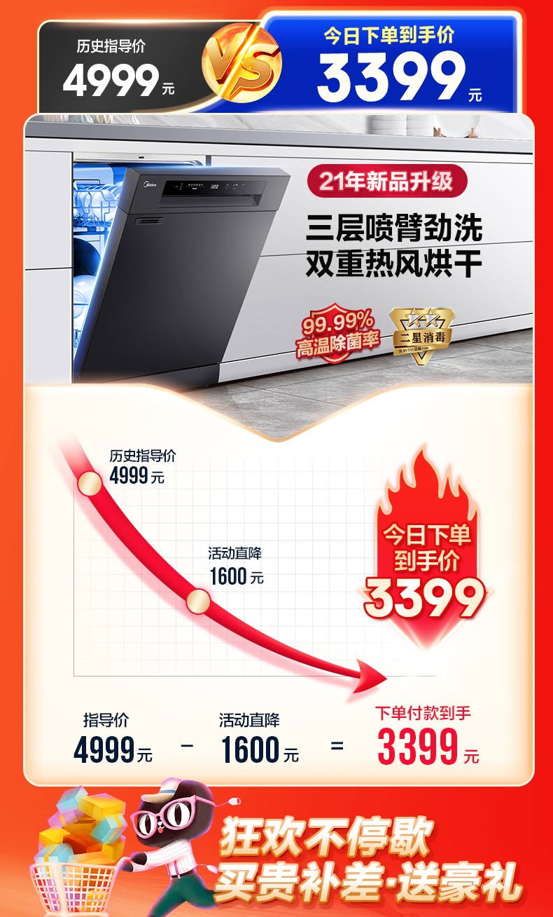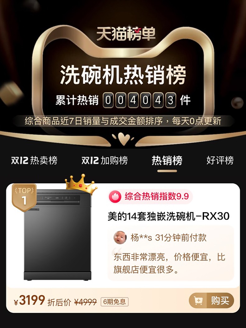 商品名称:美的RX30洗碗机全自动家用13+1套独嵌两用消毒热风烘干智能一体机
