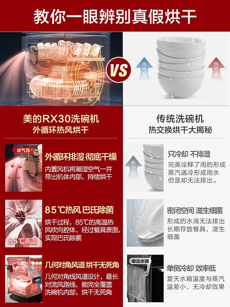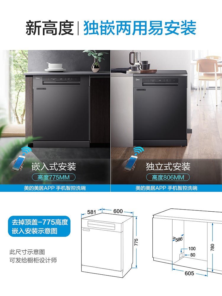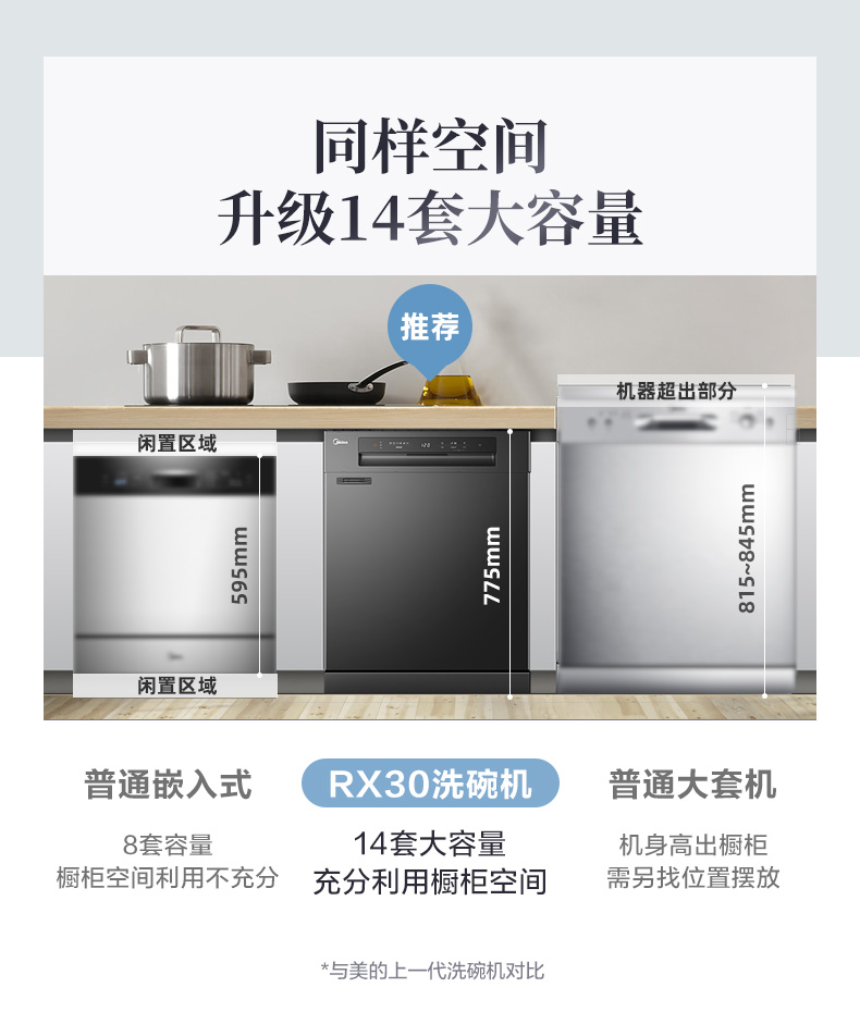 美的RX30洗碗机全自动家用13+1套独嵌两用消毒热风烘干智能一体机