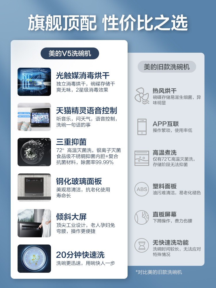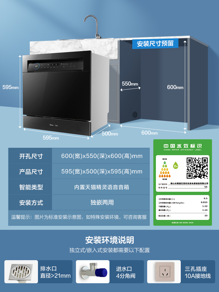 商品名称:美的洗碗机全自动家用台式嵌入式烘干消毒杀菌一体式洗碗机10套V5