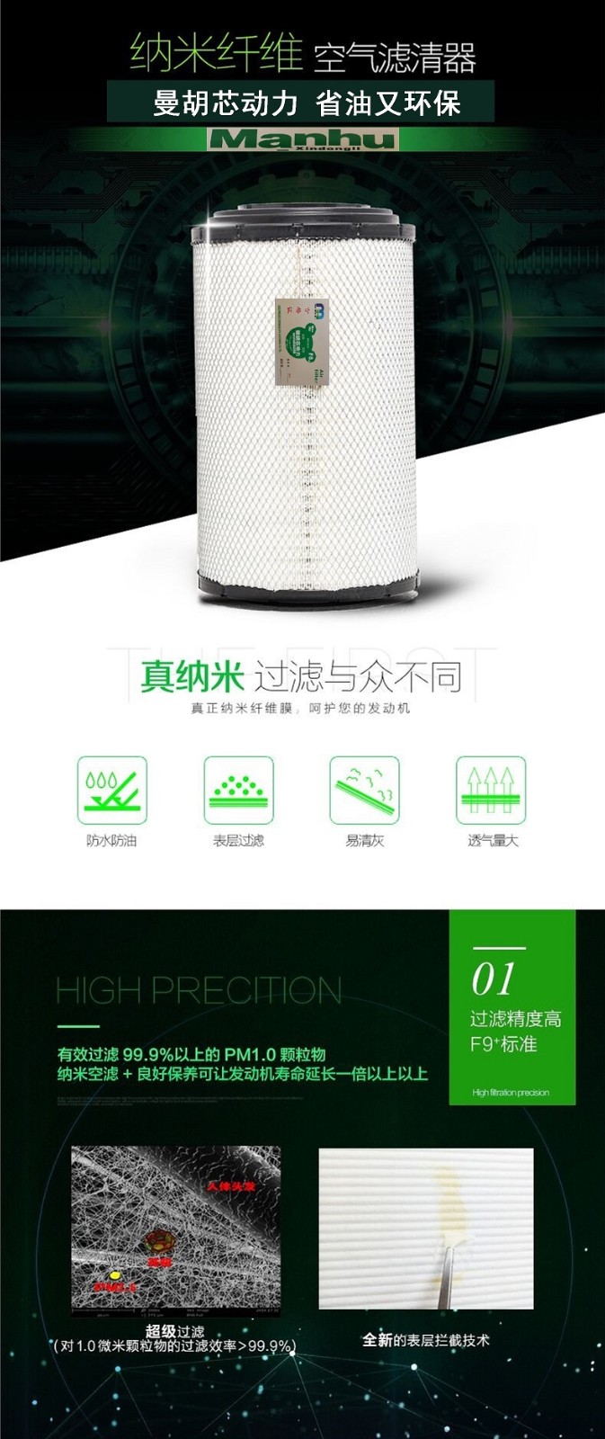 商品名称:曼胡芯动力纳米空滤清洁气体纳米芯省油3347欧曼康明斯GTL/EST