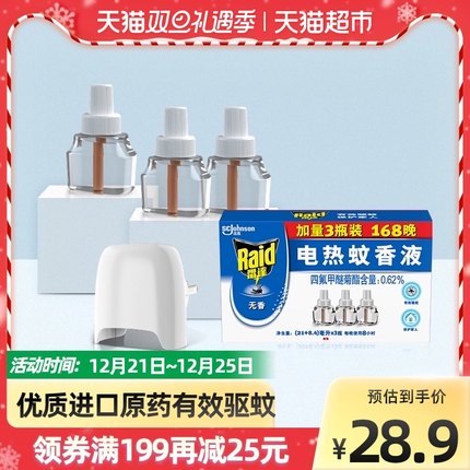 商品名称:雷达电蚊香液 无味防蚊驱蚊+加热器168晚1300+小时3瓶装插电蚊香