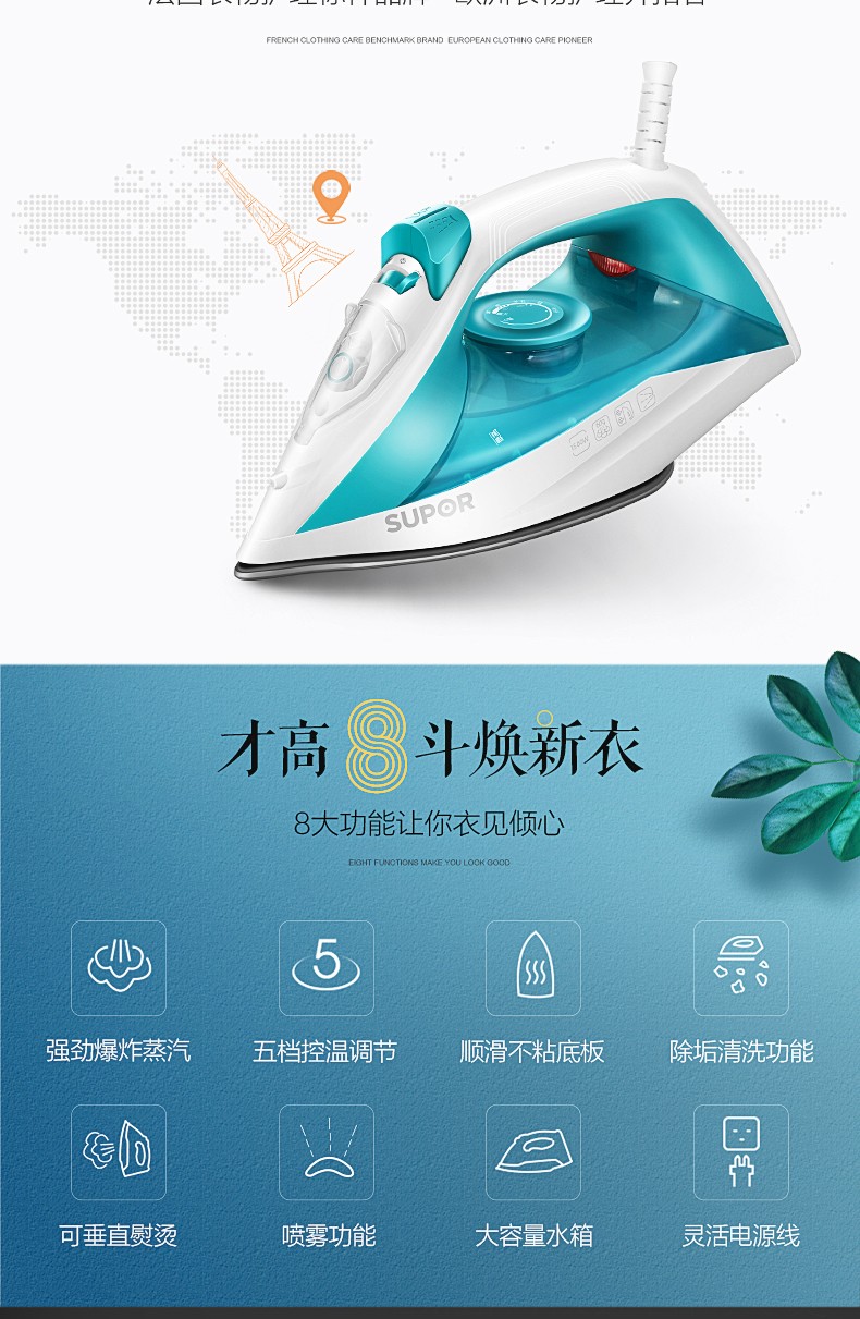苏泊尔电熨斗烫斗家用小型水蒸汽手持烫衣服平烫干湿两用熨烫机运
