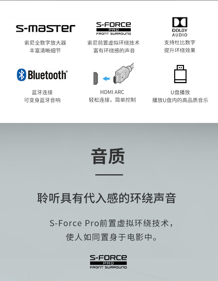 商品名称:Sony/索尼 HT-S200F 紧凑型回音壁音响 电视音响 家庭音响