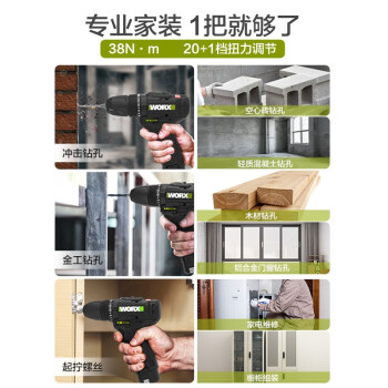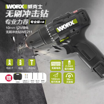 商品名称:威克士(Worx)12V无刷充电式手电钻电动螺丝刀家用多功能锂电冲击钻WE211 【店长推荐】2.0Ah×1块电池标配装 WE211