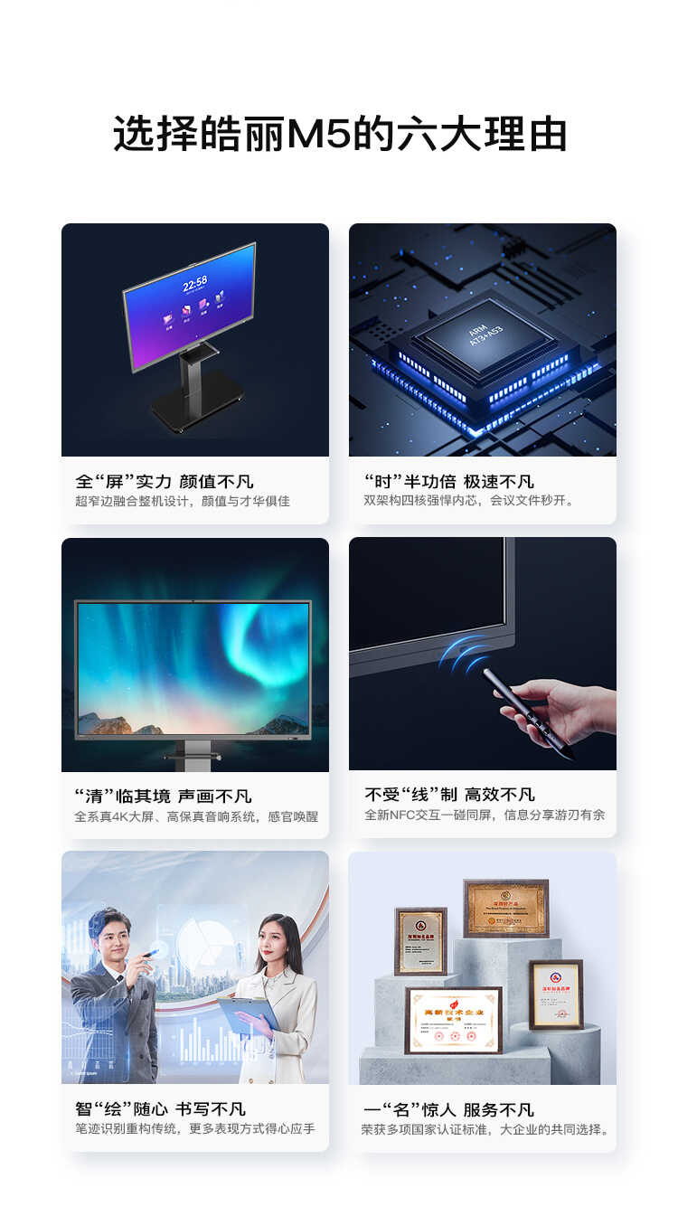 皓丽M5系列75英寸会议平板交互式电子白板教学办公设备4K触摸显示