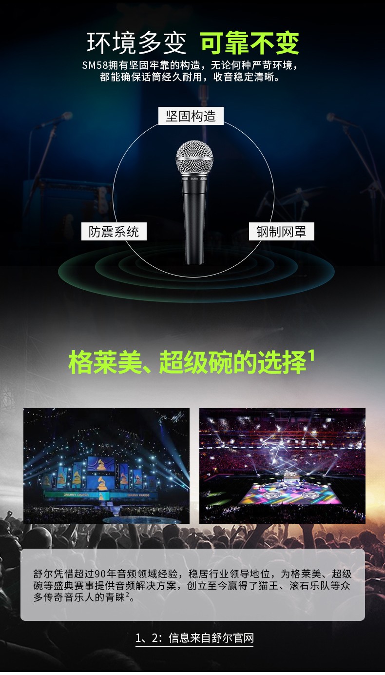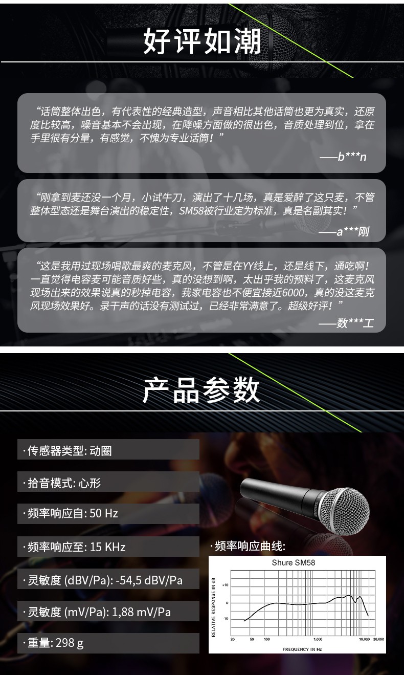 商品名称:Shure舒尔SM58S/LC直播舞台表演出K歌专业话筒动圈有线网红麦克风