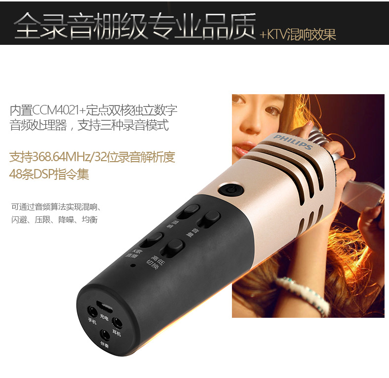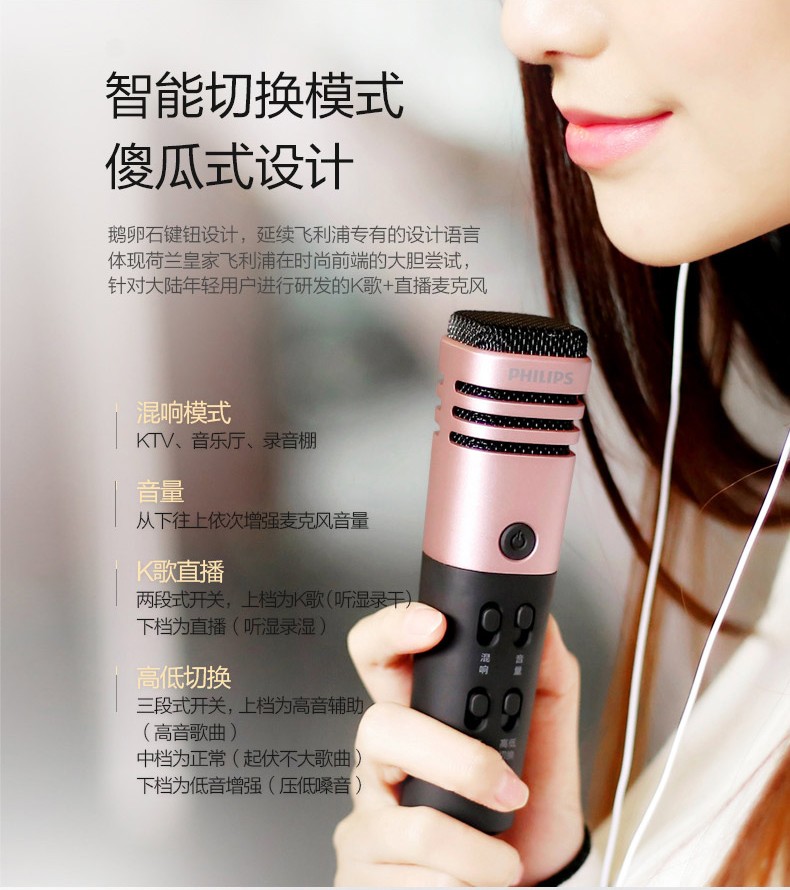商品名称:飞利浦 dlk38001全民k歌神器网红主播直播设备全套全民录音专用唱歌话筒套装家用麦克风电脑手机全能电容麦
