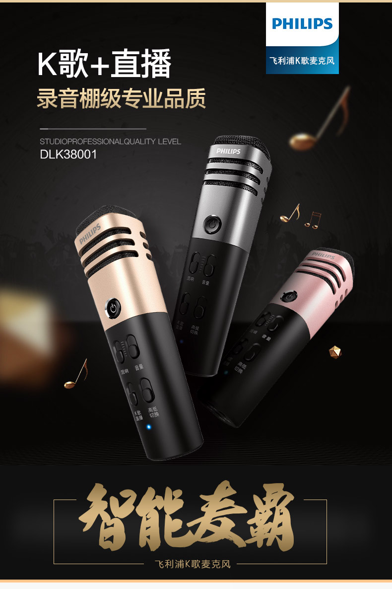 飞利浦 dlk38001全民k歌神器网红主播直播设备全套全民录音专用唱歌话筒套装家用麦克风电脑手机全能电容麦