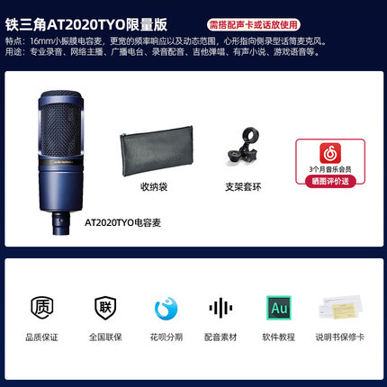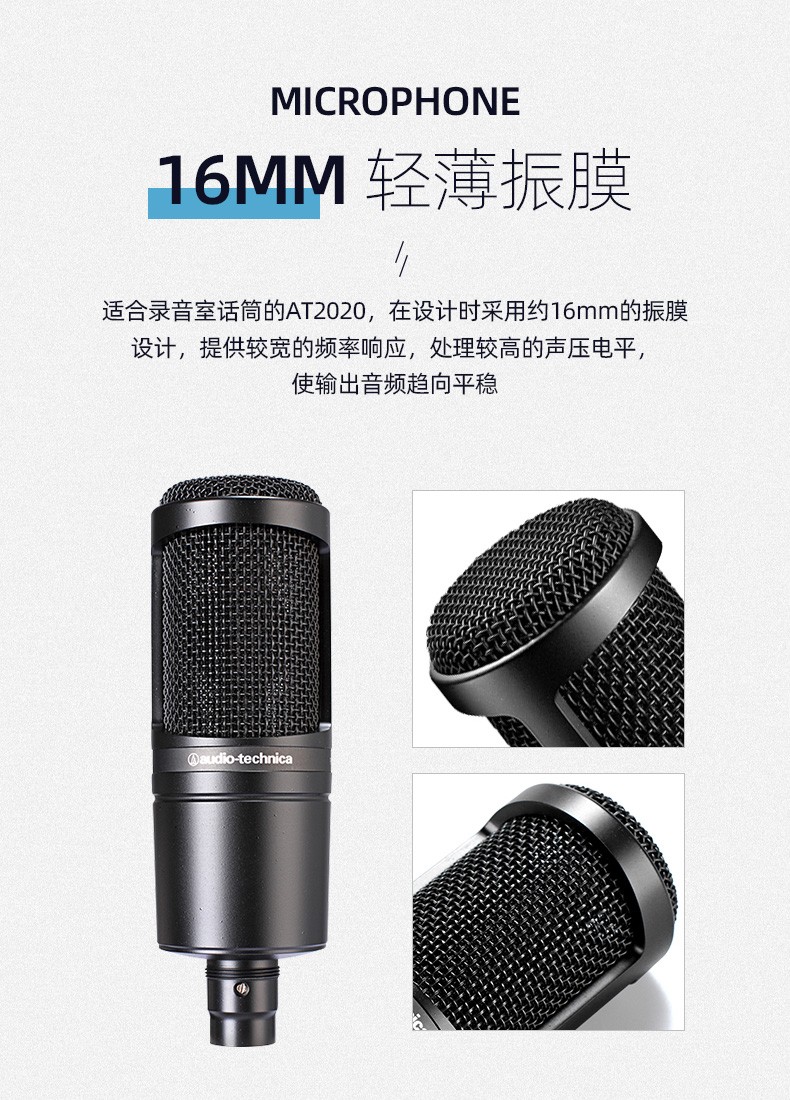 商品名称:铁三角AT2020电容麦克风电脑台式话筒声卡直播套装专业有声书录音设备全套小说喜马拉雅配音专用k歌麦克风