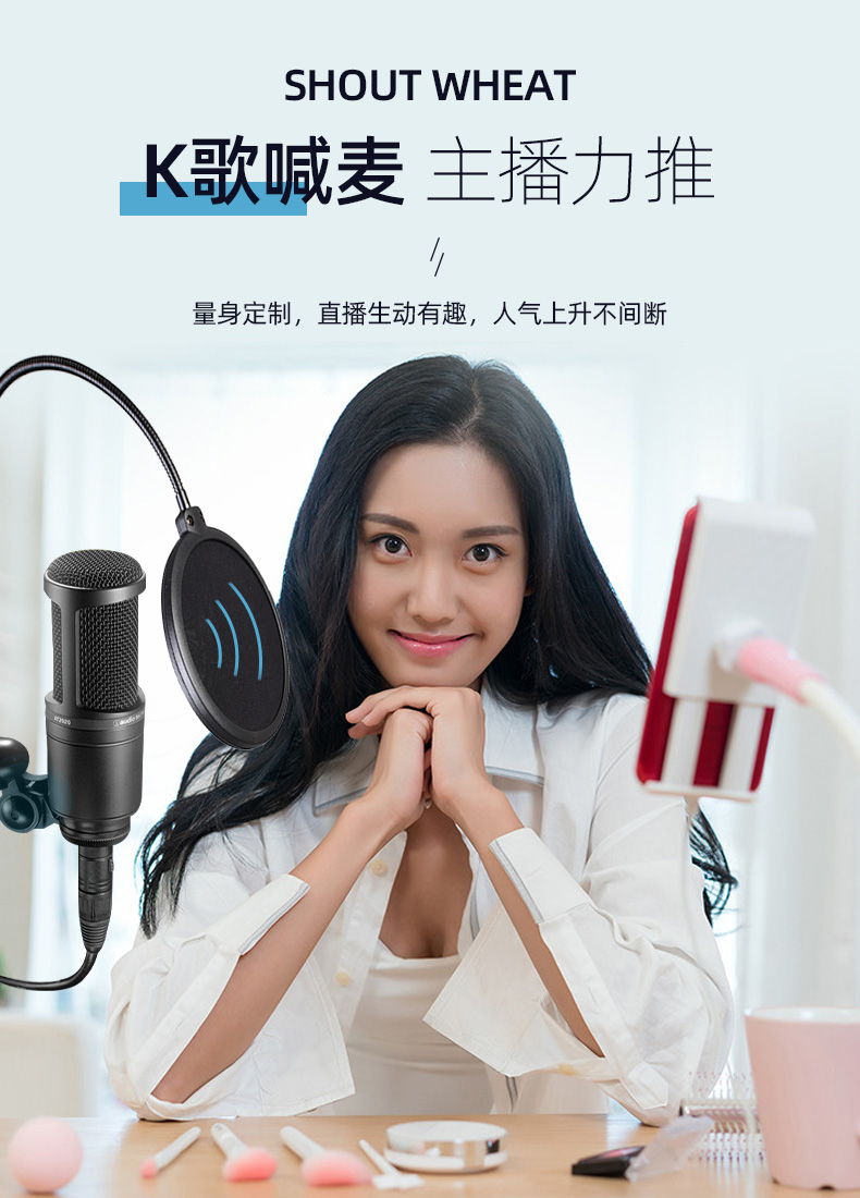 铁三角AT2020电容麦克风电脑台式话筒声卡直播套装专业有声书录音设备全套小说喜马拉雅配音专用k歌麦克风