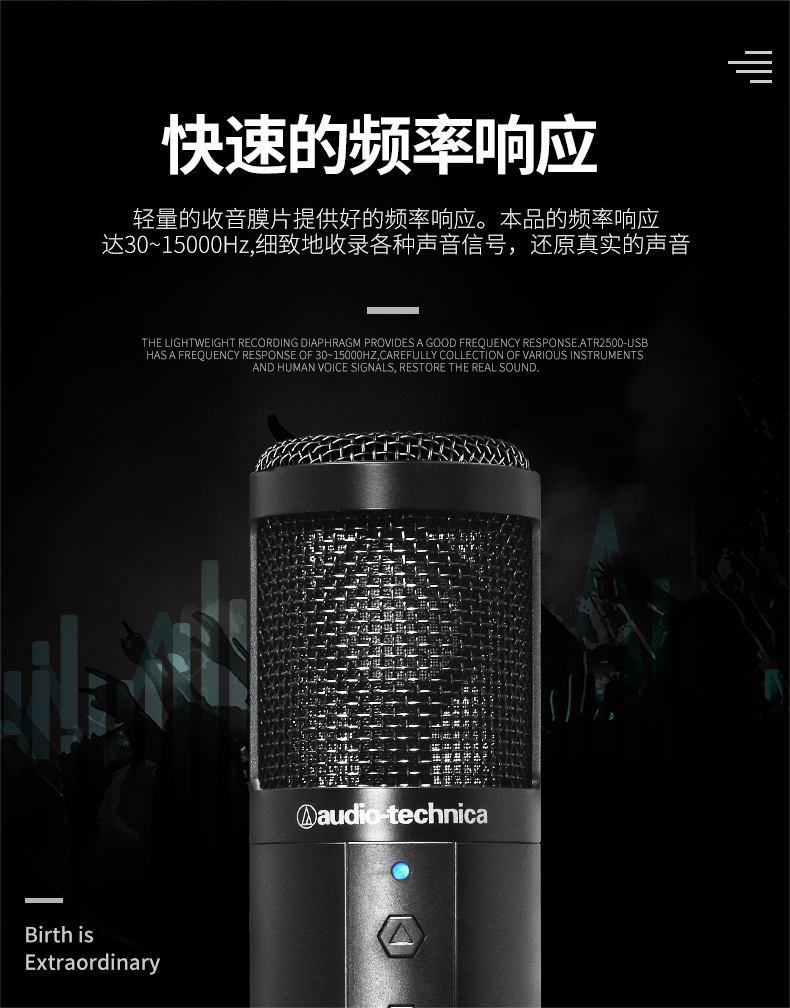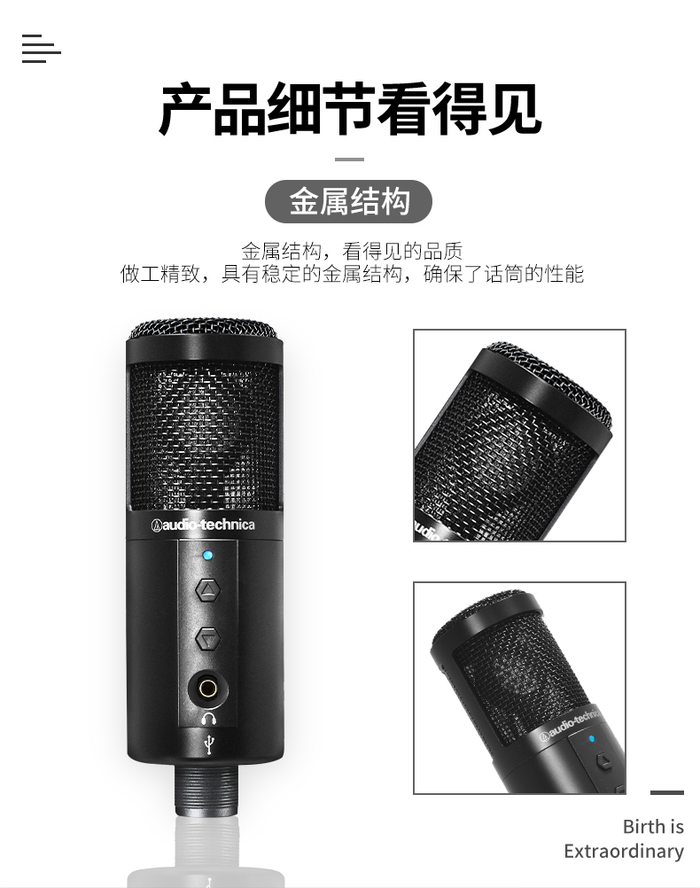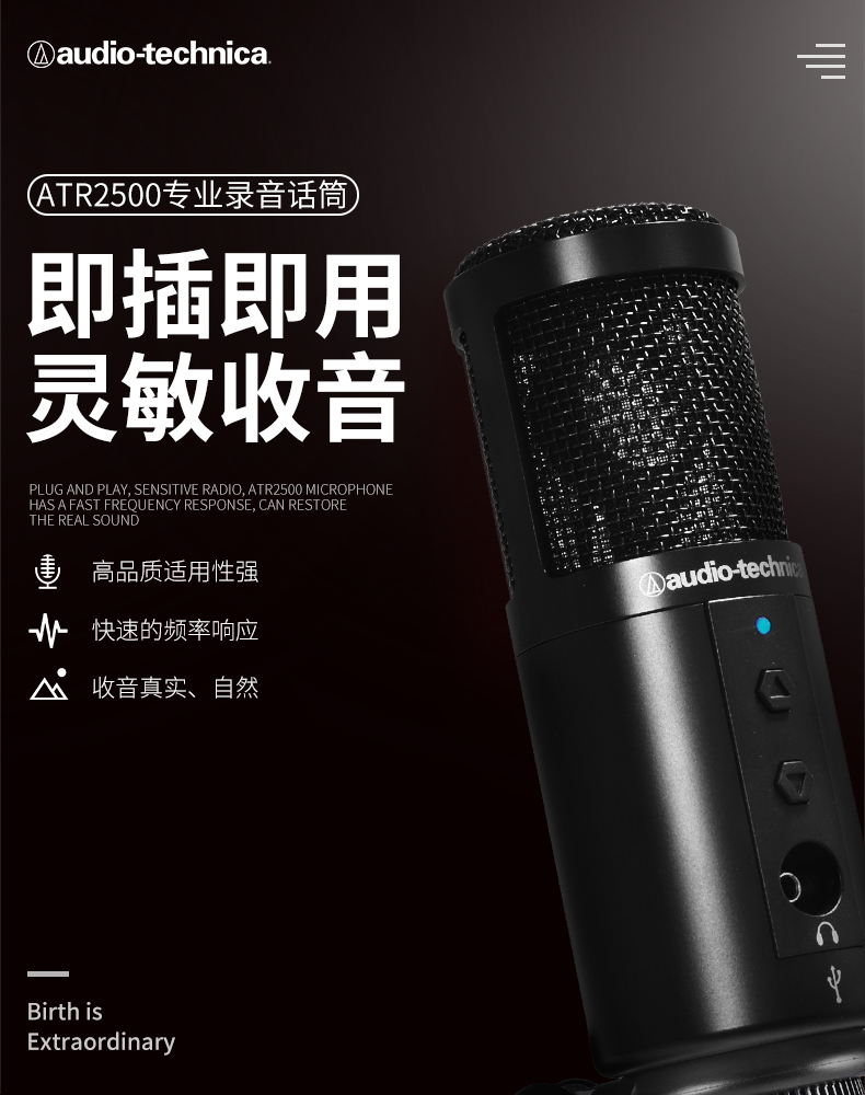 商品名称:铁三角麦克风ATR2500 主播K歌直播 录音设备 台式电脑USB电容话筒