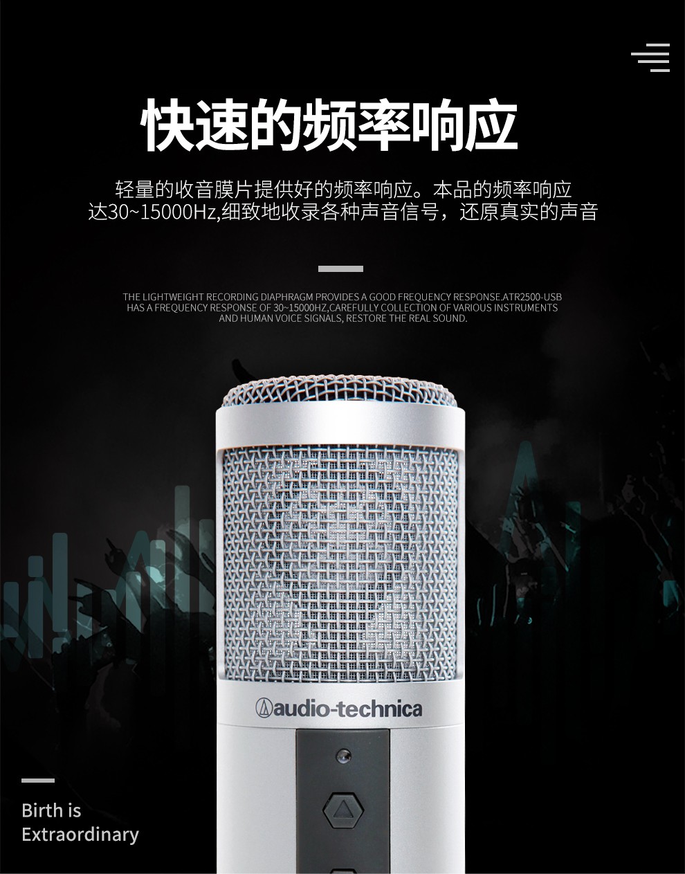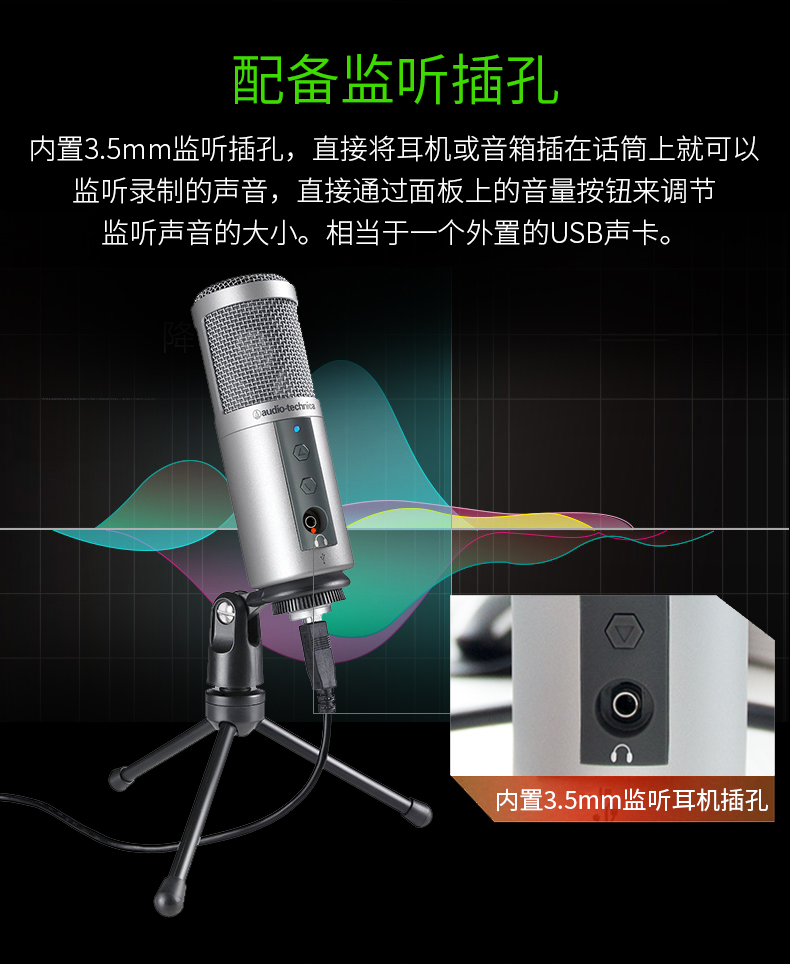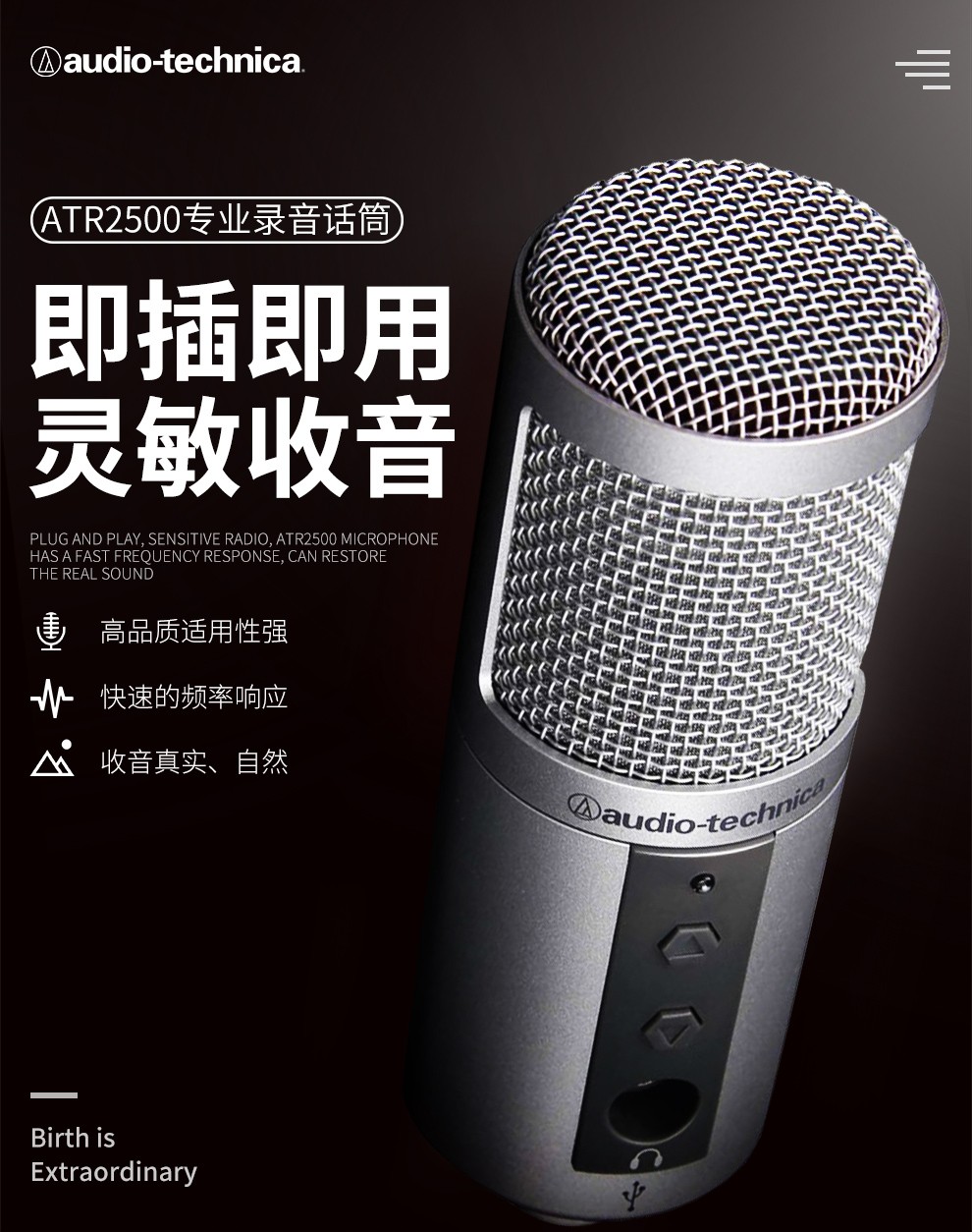 商品名称:铁三角ATR2500电容麦克风话筒有声书录音设备游戏情感语音主播全民K歌手机电脑直播专业配音台式usb专用