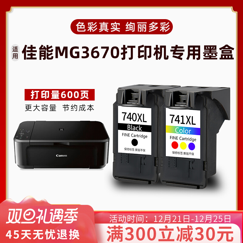 商品名称:适用佳能MG3670墨盒 大容量CANON 3670墨水盒打印机黑色彩色连喷墨盒套装可连供易加墨水