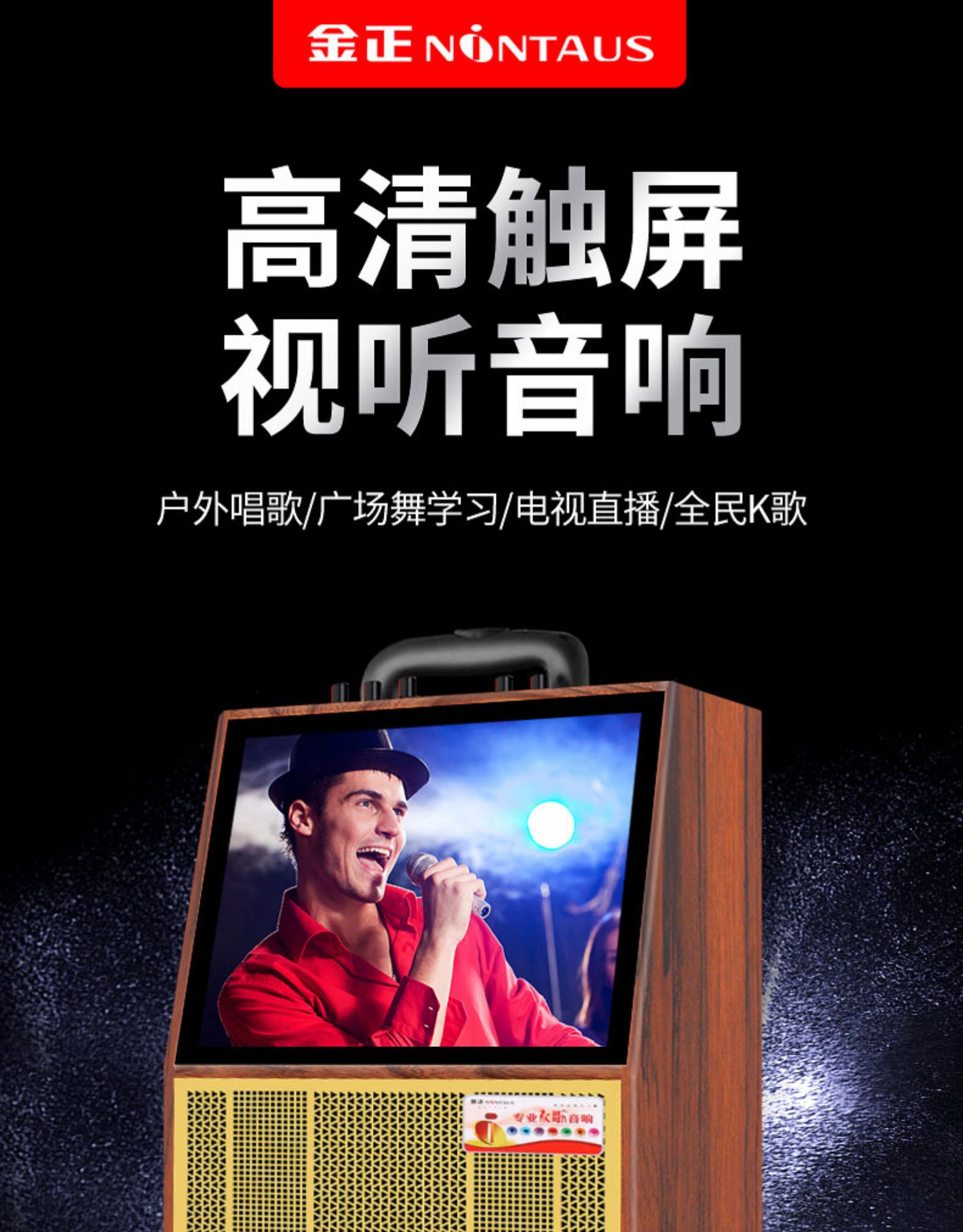 商品名称:金正广场舞音响带显示屏幕户外演出蓝牙移动拉杆音箱无线话筒K歌家用大功率唱歌视频大音量便携式室外一体