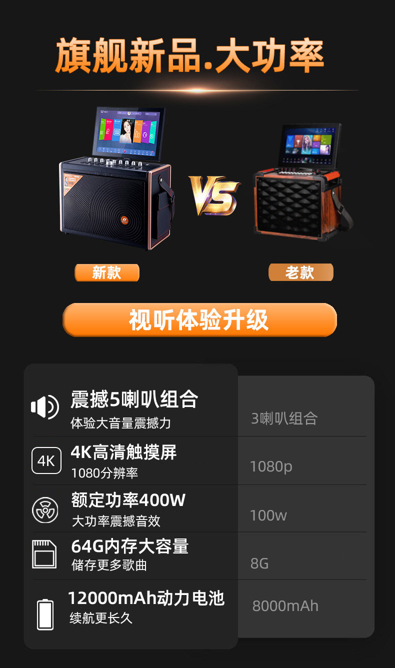 商品名称:山水广场舞音响带显示屏幕户外演出蓝牙移动拉杆音箱无线话筒K歌家用大功率唱歌视频大音量便携式室外一体机