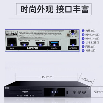 商品名称:杰科(GIEC)BDP-X800 真4K UHD蓝光播放机 杜比视界3D播放 4K HDR家庭影院DVD影碟机 USB硬盘播放器