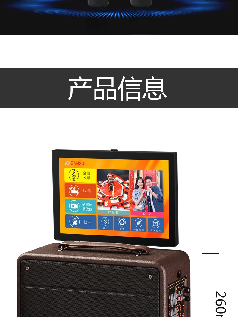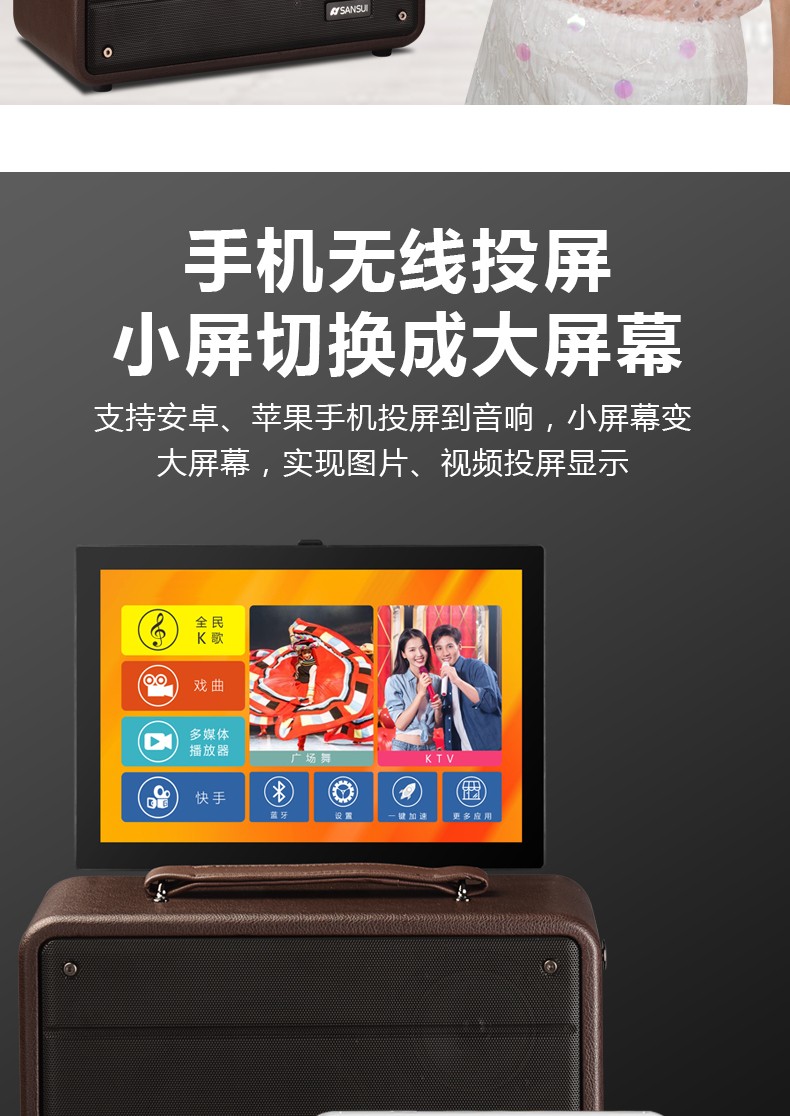 商品名称:山水广场舞音响带显示屏音箱移动便携式户外演出K歌视频播放器