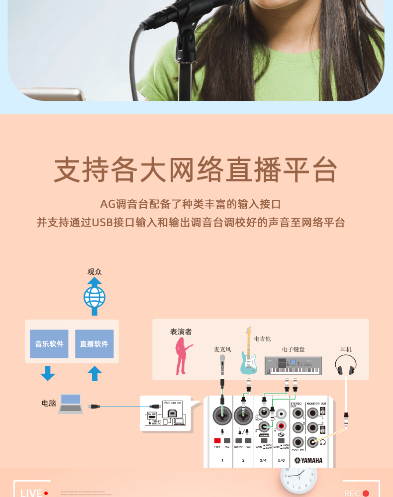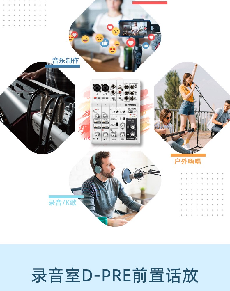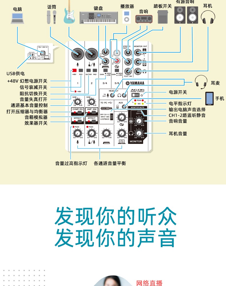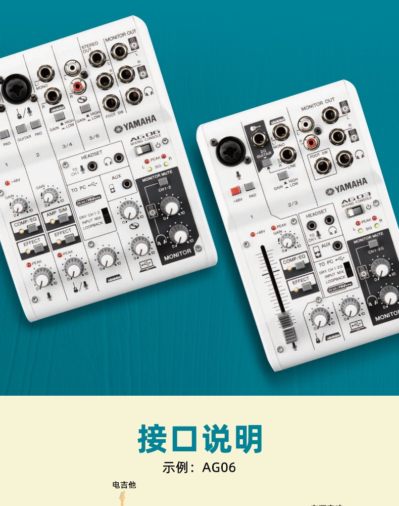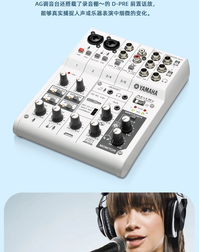 商品名称:Yamaha/雅马哈 AG03 AG06外置声卡调音台电脑手机录音直播K歌套装