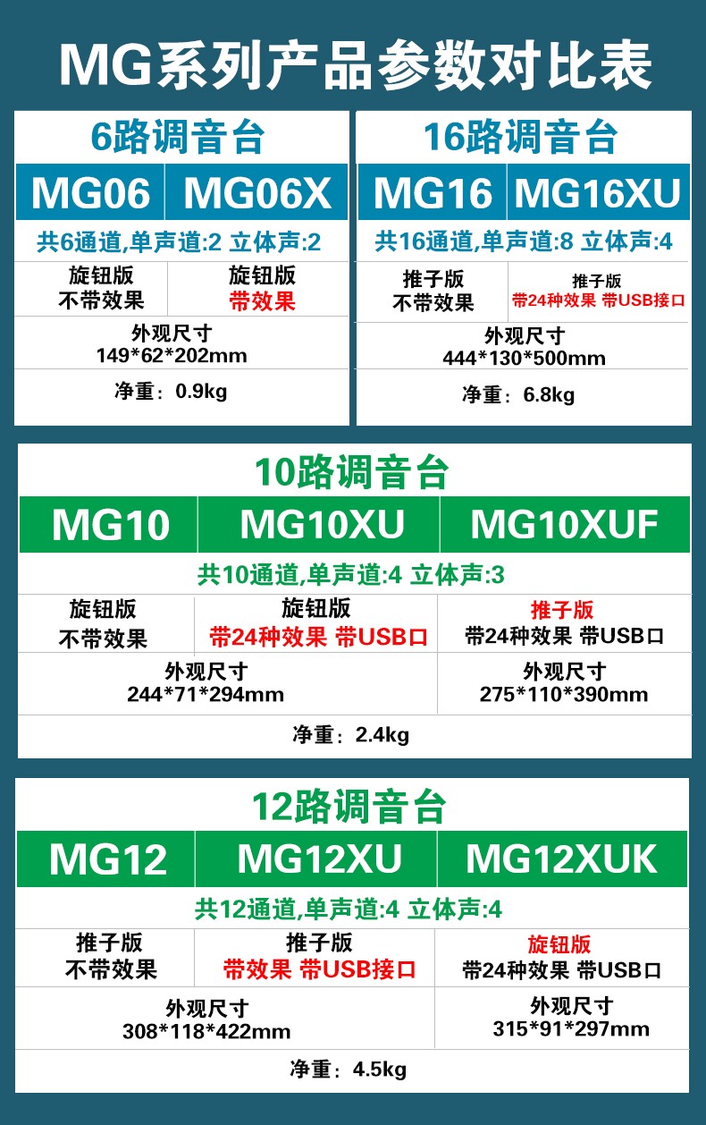 商品名称:Yamaha/雅马哈MG06X MG10 MG12XU MG16XU MG20专业16路12路调音台