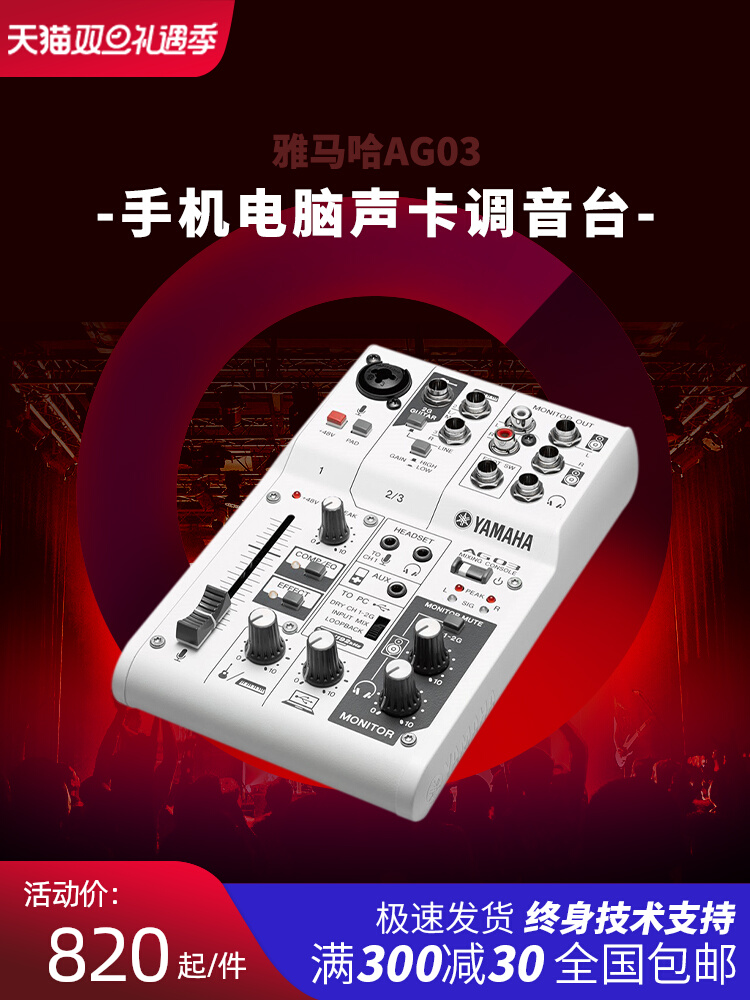 雅马哈YAMAHA声卡AG03AG06调音台手机电脑直播设备专用话筒全套装