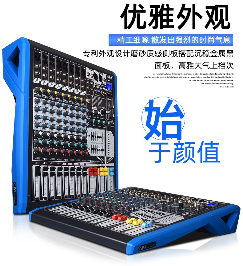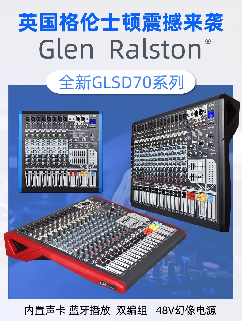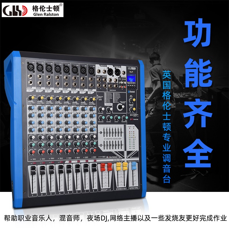 Glen Ralston/格伦士顿大型调音台小型舞台8路12路16路数字专业混响效果器声卡蓝牙带4编组USB演出直播均衡器