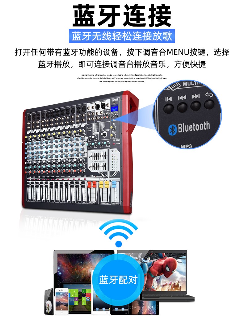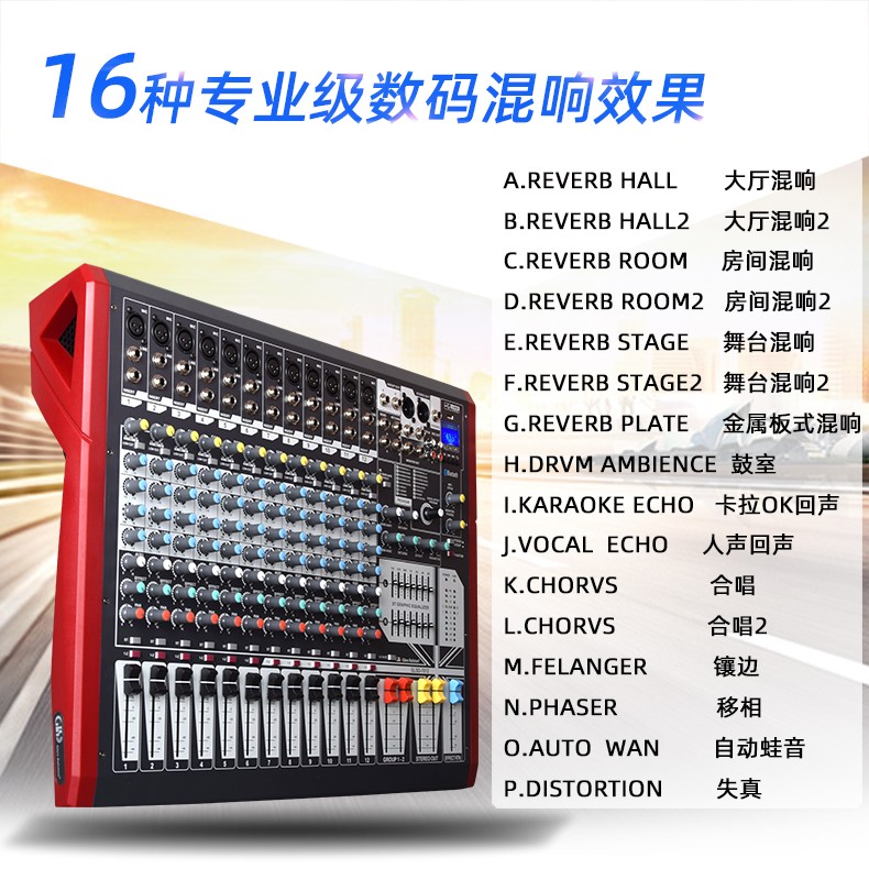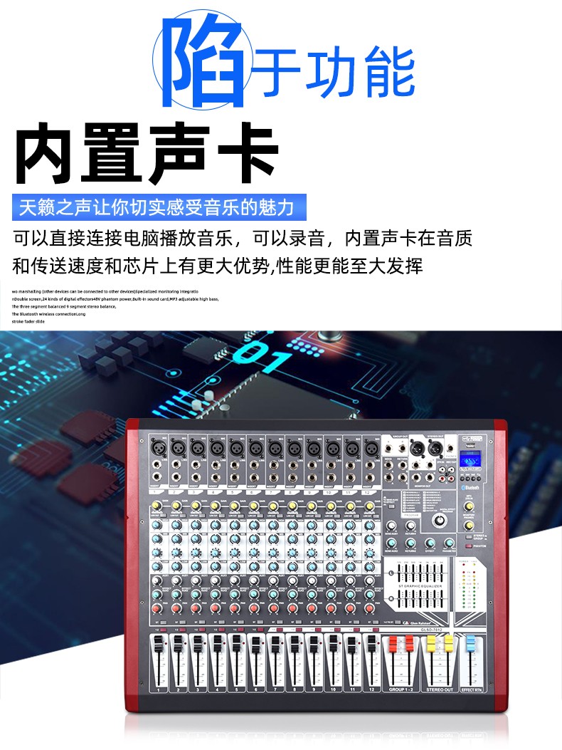 商品名称:Glen Ralston/格伦士顿大型调音台小型舞台8路12路16路数字专业混响效果器声卡蓝牙带4编组USB演出直播均衡器