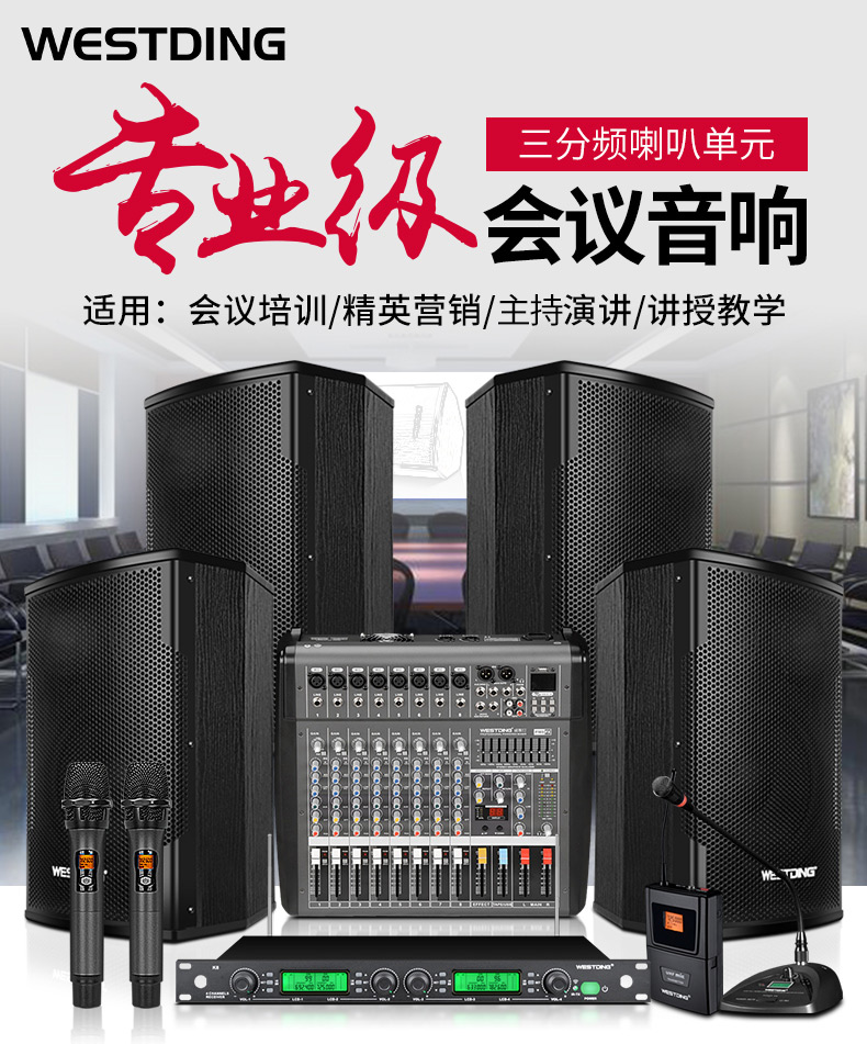 商品名称:威斯汀专业大中小型会议室音响套装功放无线话筒麦克风调音台全套会议系统设备卡拉OK音箱教室健身房培训专用