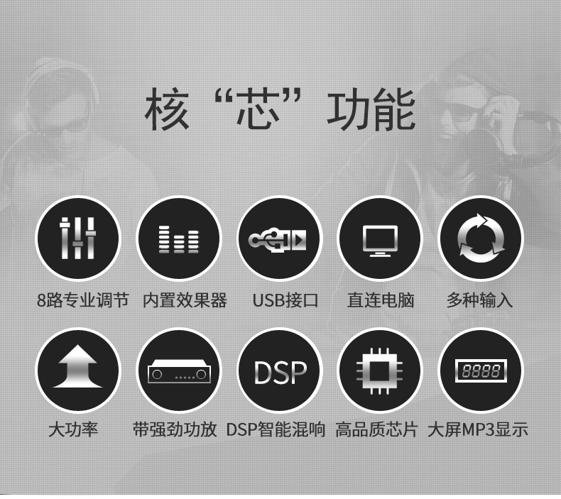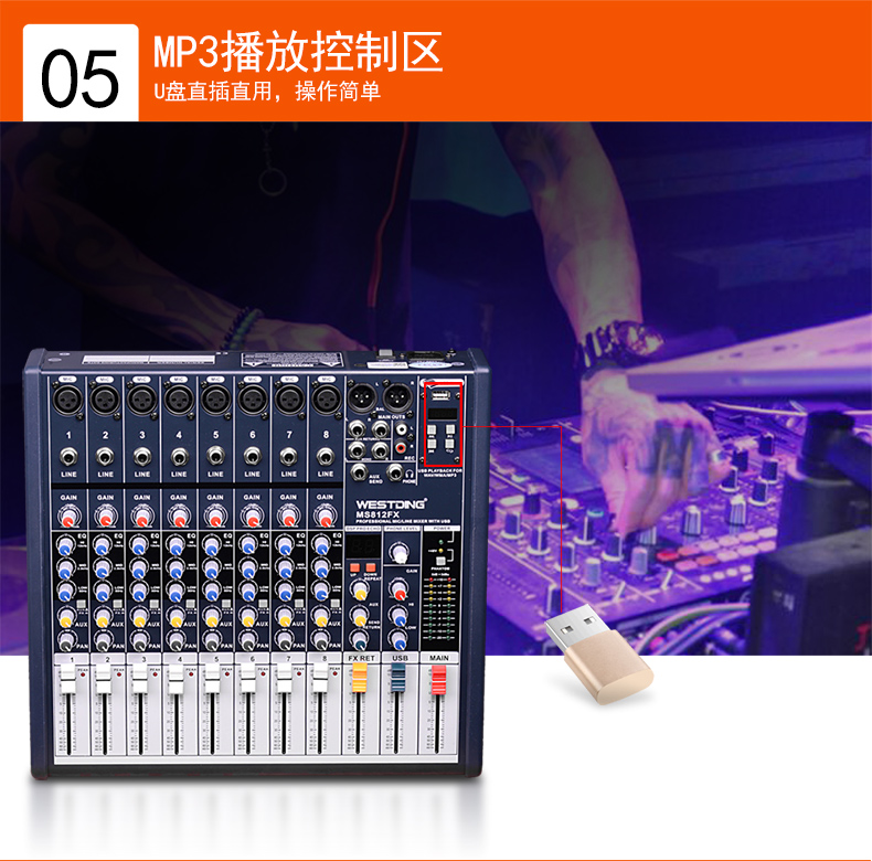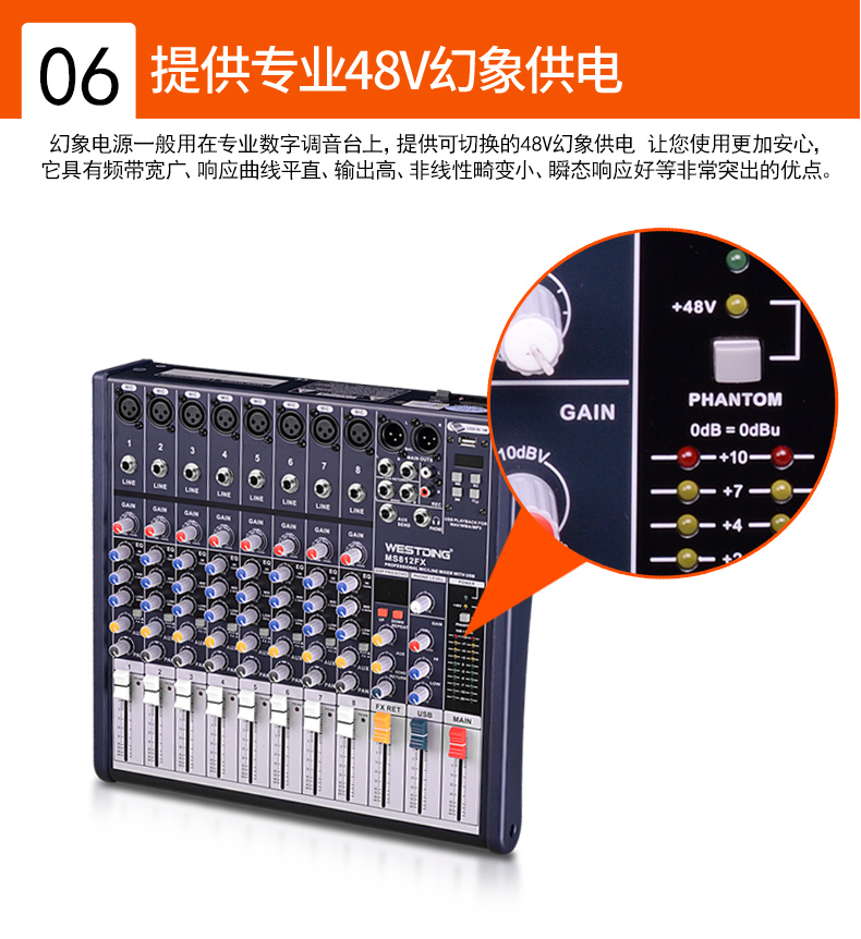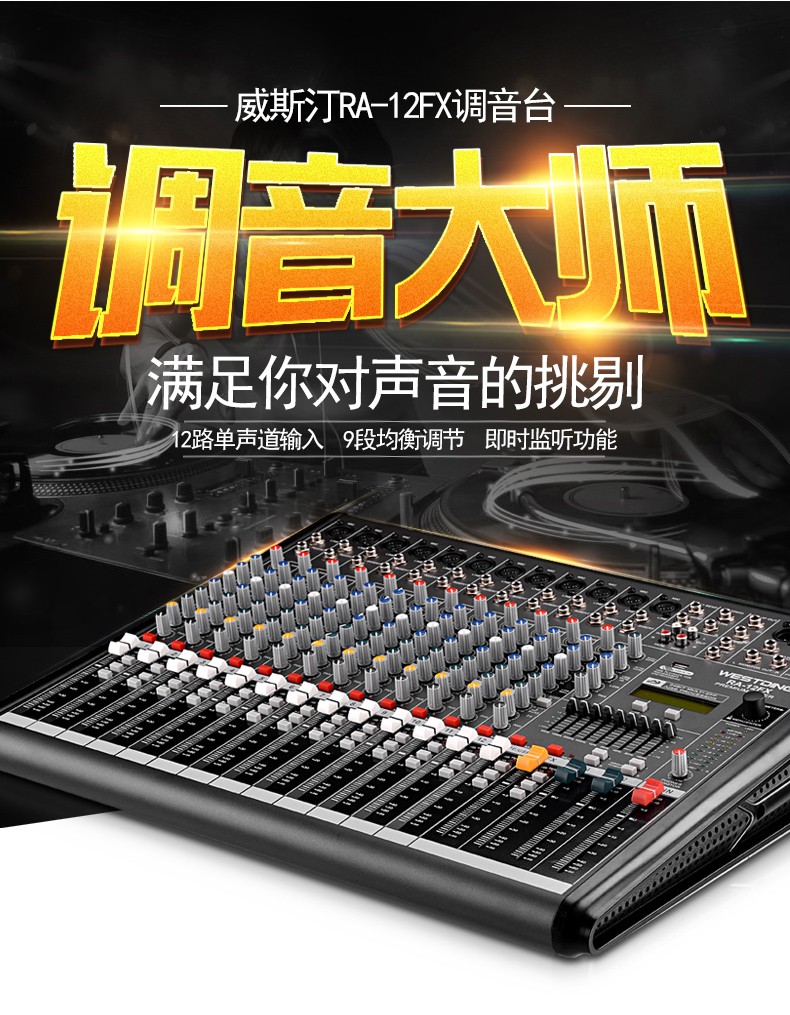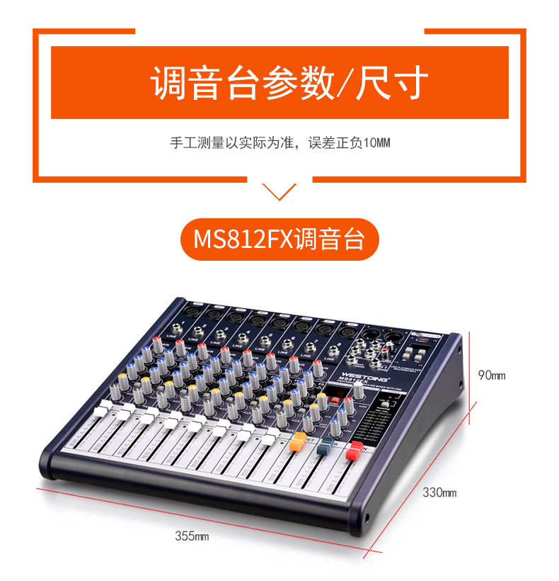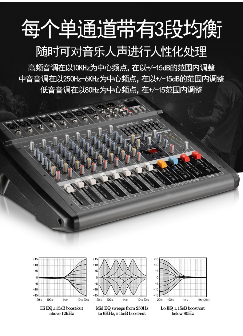 商品名称:威斯汀8FX舞台专业8路调音台ktv演出音响控音设备大功率数字音频混响调音器带功放