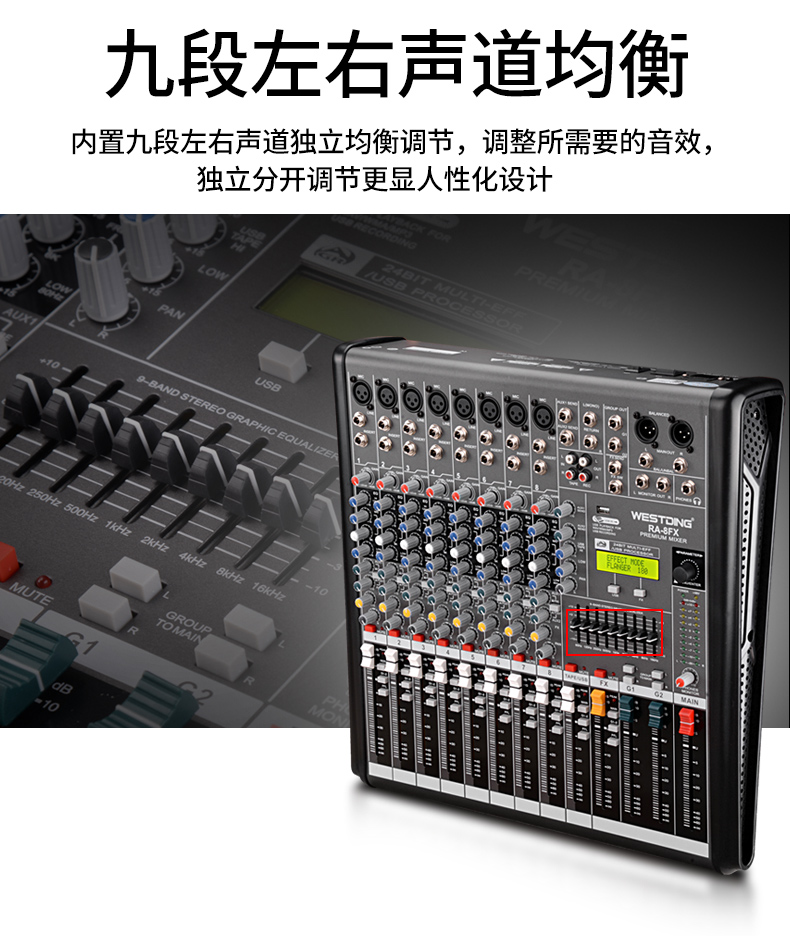 威斯汀8FX舞台专业8路调音台ktv演出音响控音设备大功率数字音频混响调音器带功放