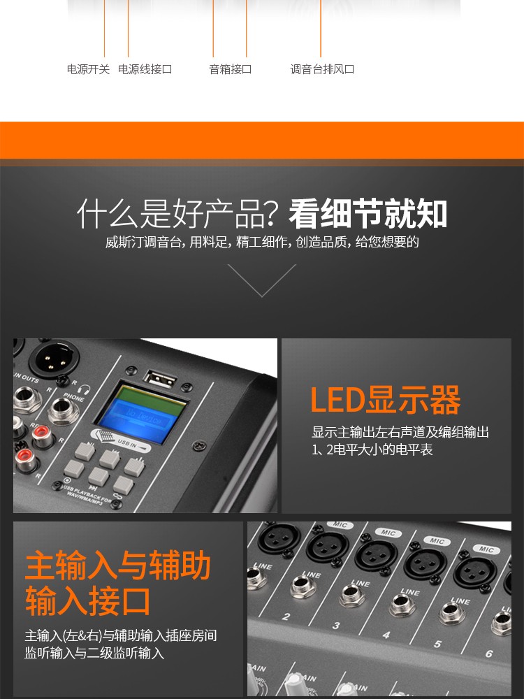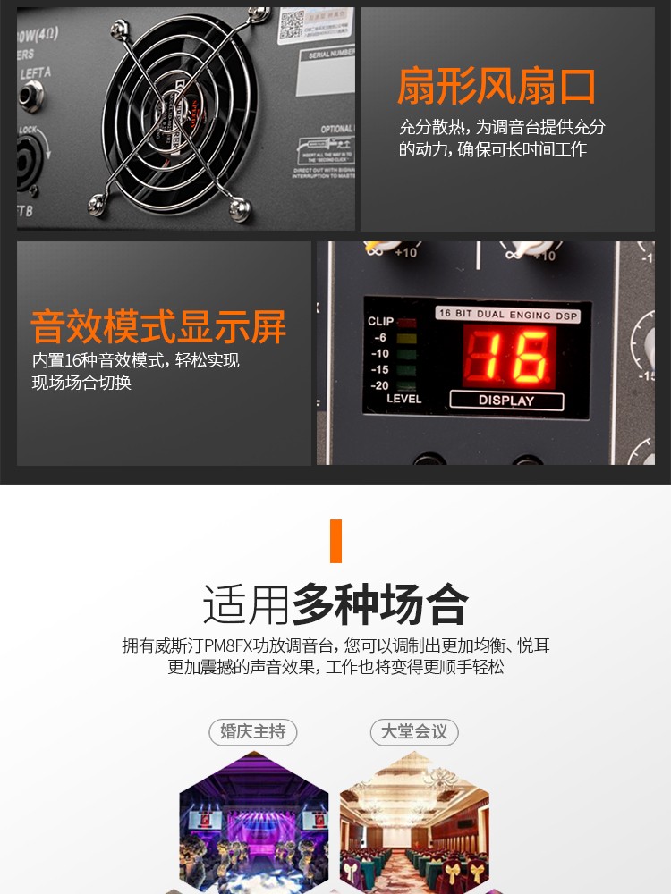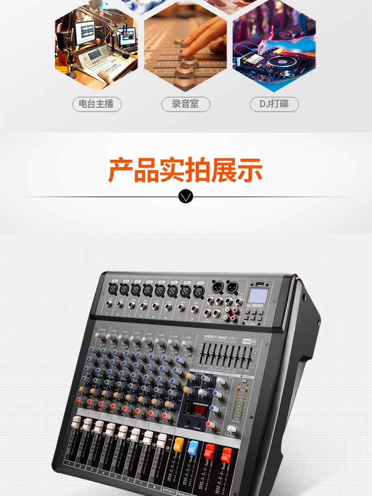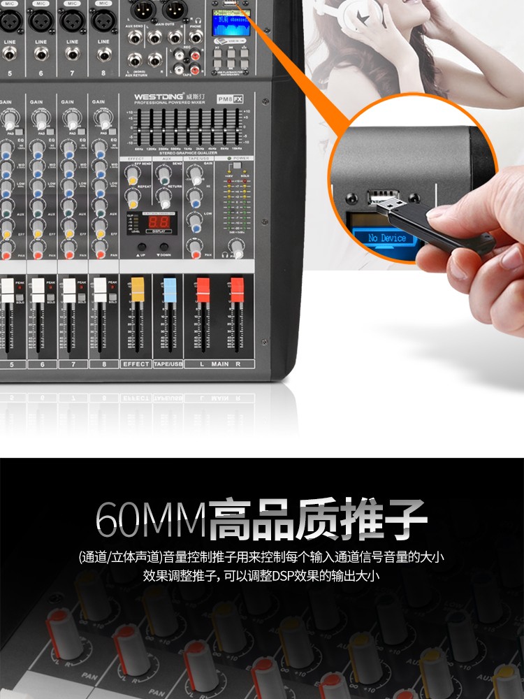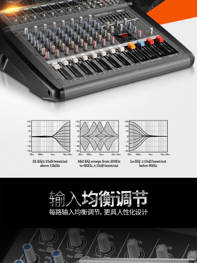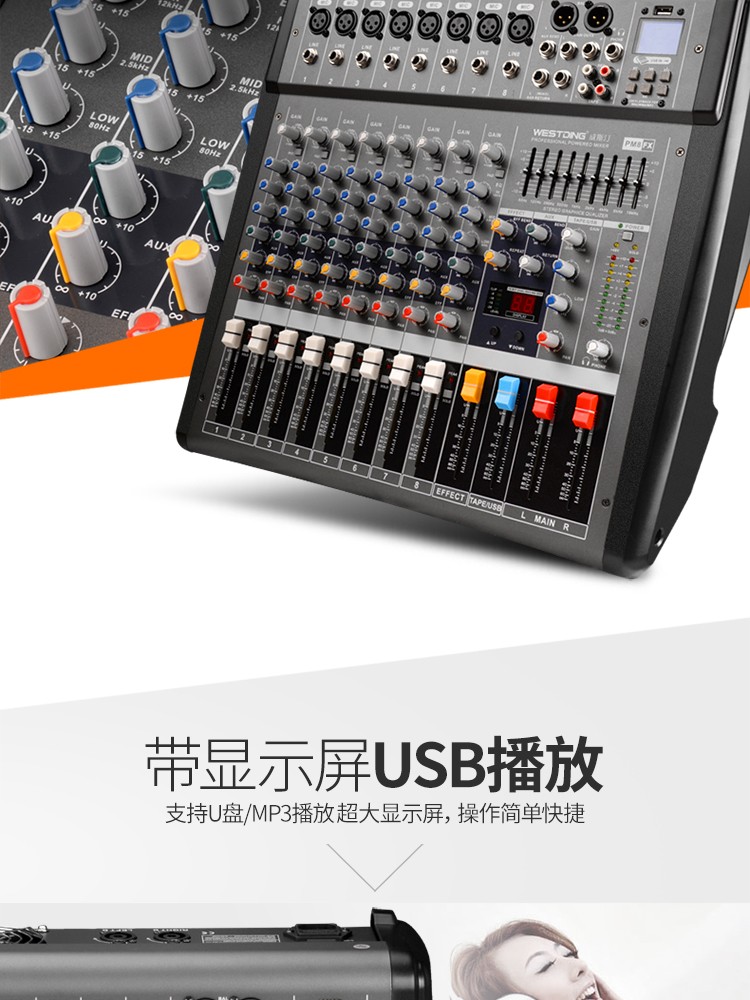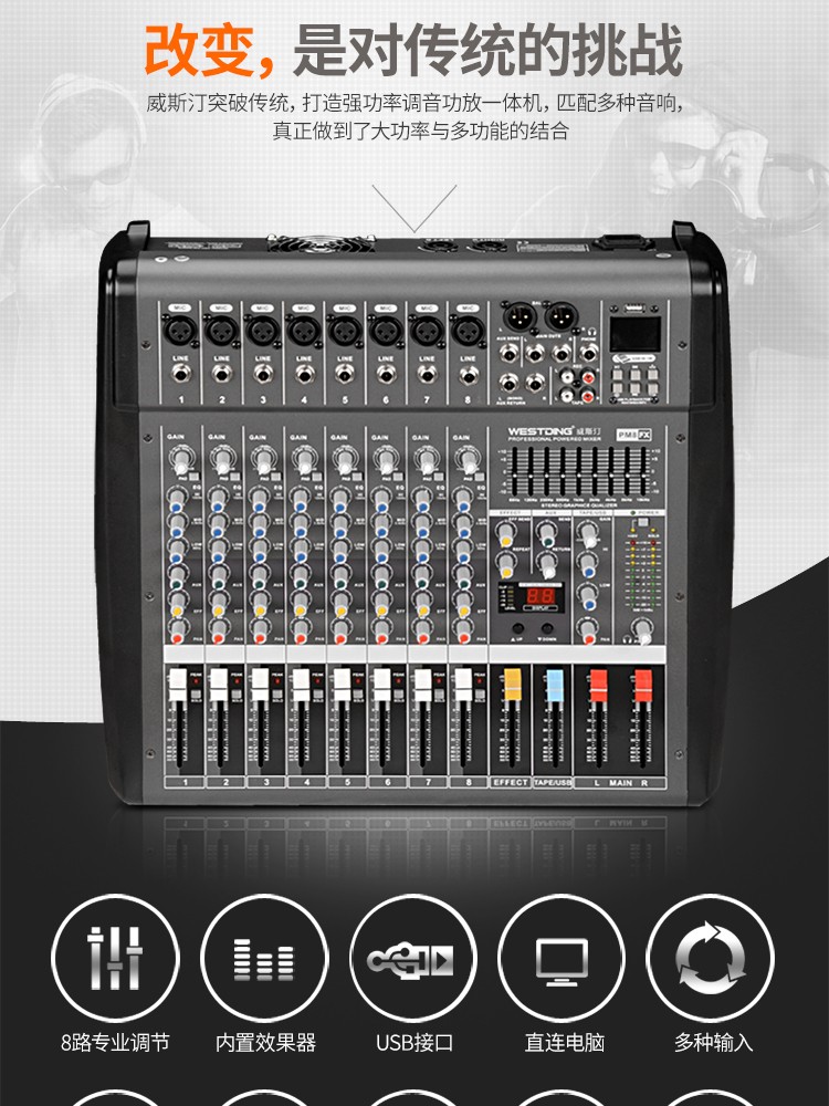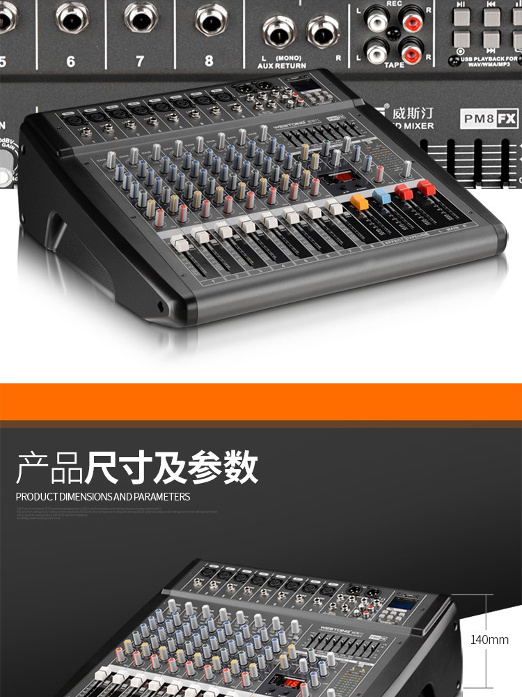 商品名称:WESTDING/威斯汀 PM8FX 专业舞台婚庆8路调音演出设备 调音台带功放一体机大功率 带效果