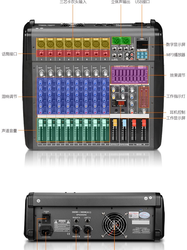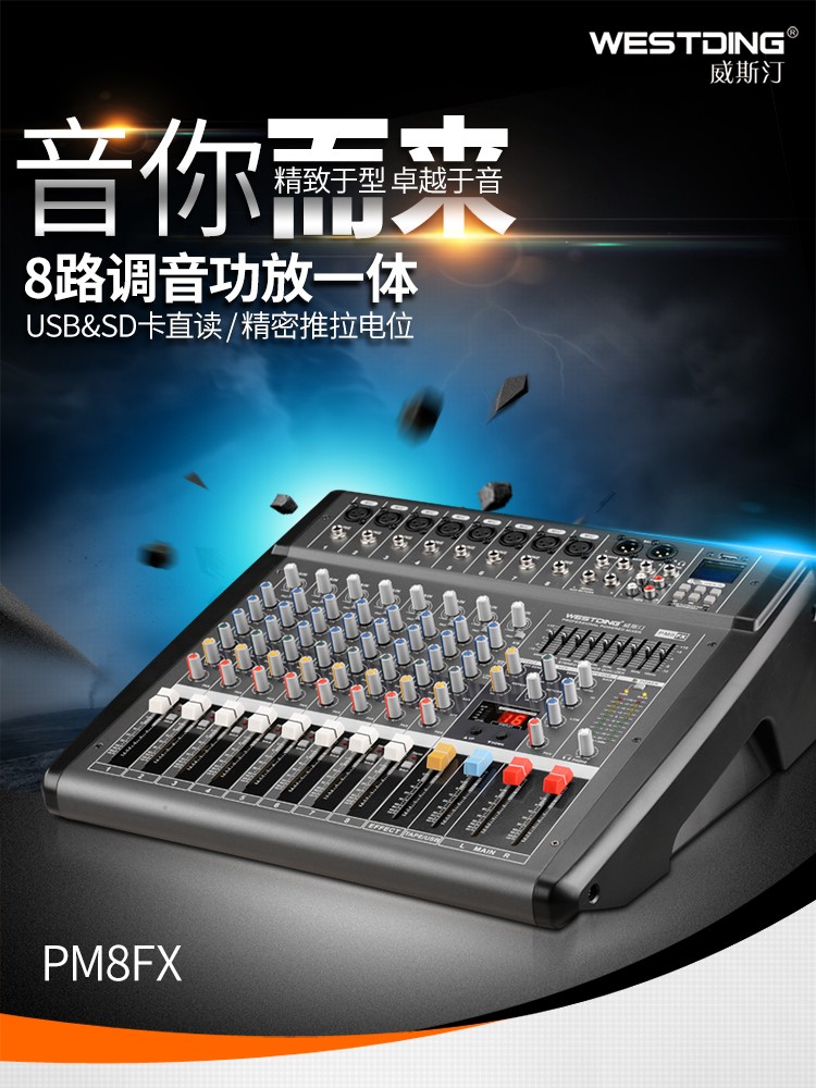 WESTDING/威斯汀 PM8FX 专业舞台婚庆8路调音演出设备 调音台带功放一体机大功率 带效果