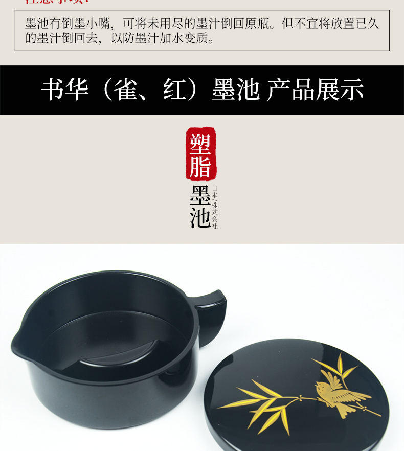 商品名称:日本进口墨运堂多功能墨池 书法专用 池内舔笔 无洒漏 书华红雀 树脂砚台 仿摔