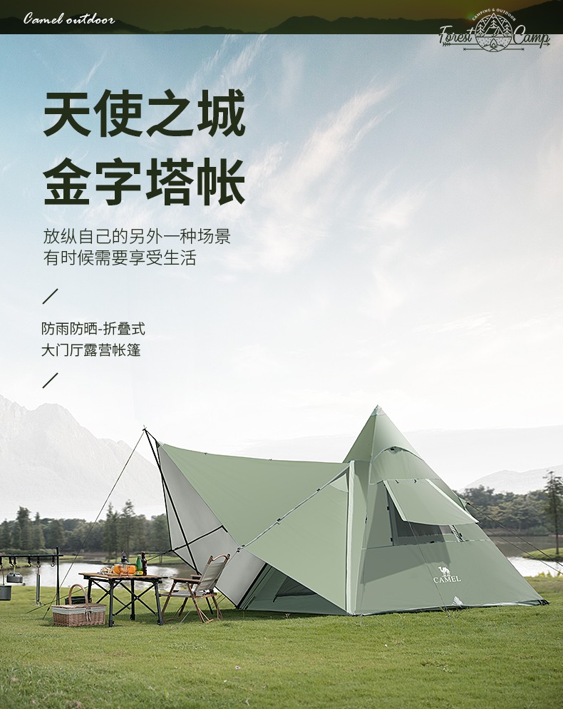 【天使之城】骆驼户外精致露营帐篷便携式折叠印第安金字塔自动帐