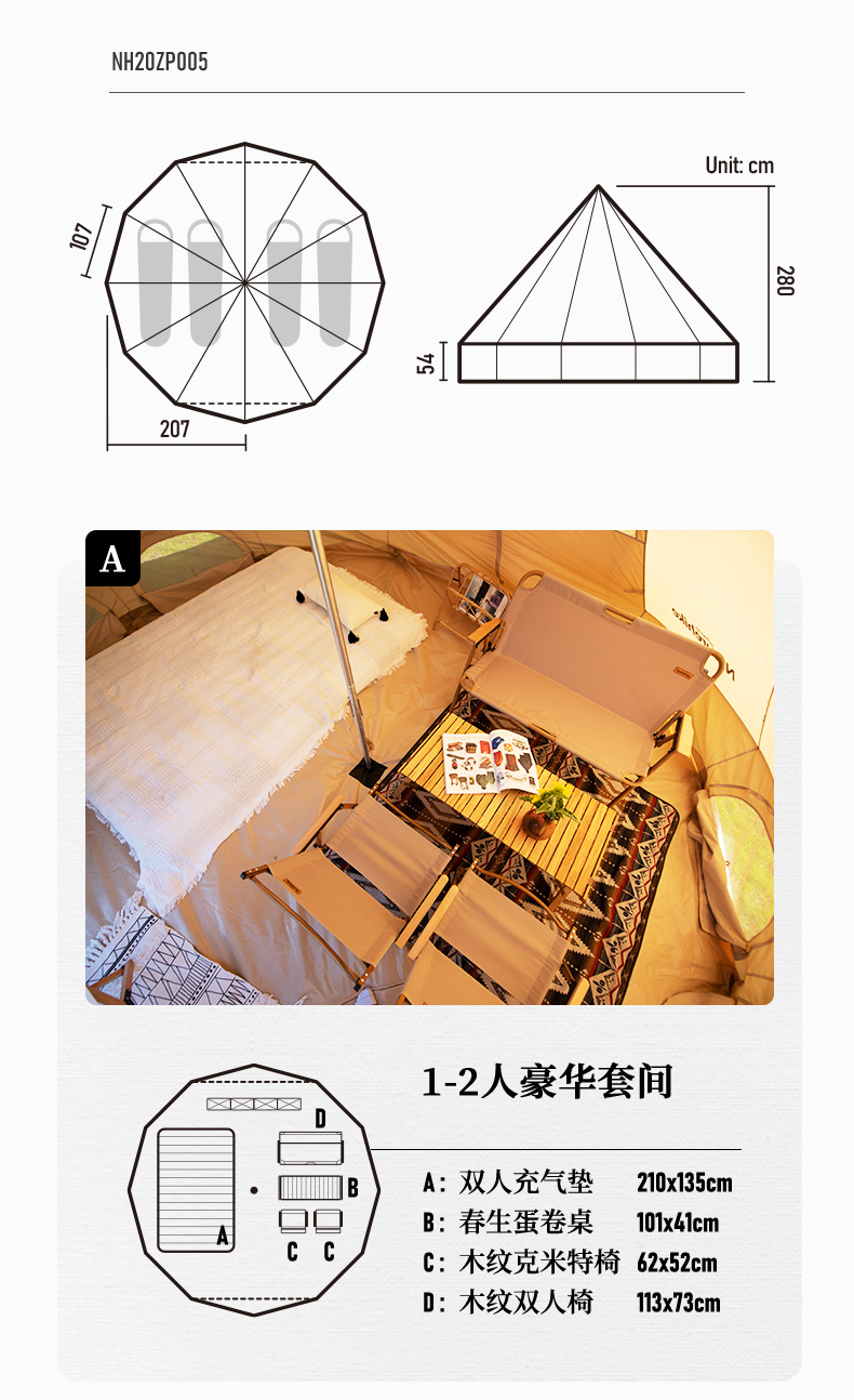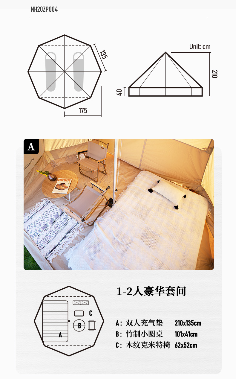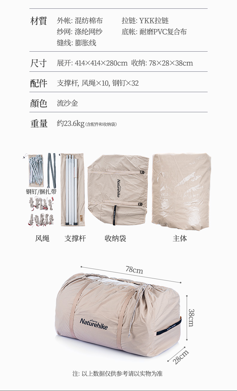 商品名称:Naturehike挪客Glamping印第安户外大型多人野露营棉布金字塔帐篷