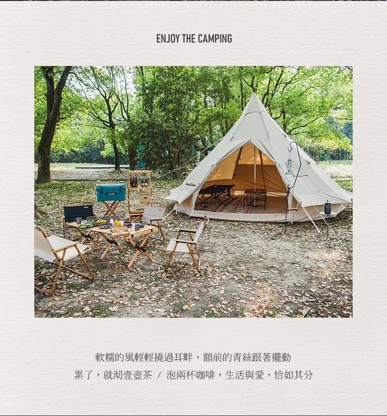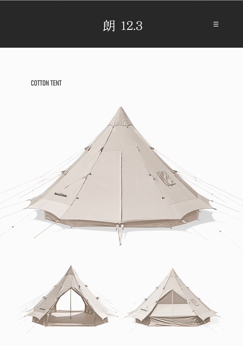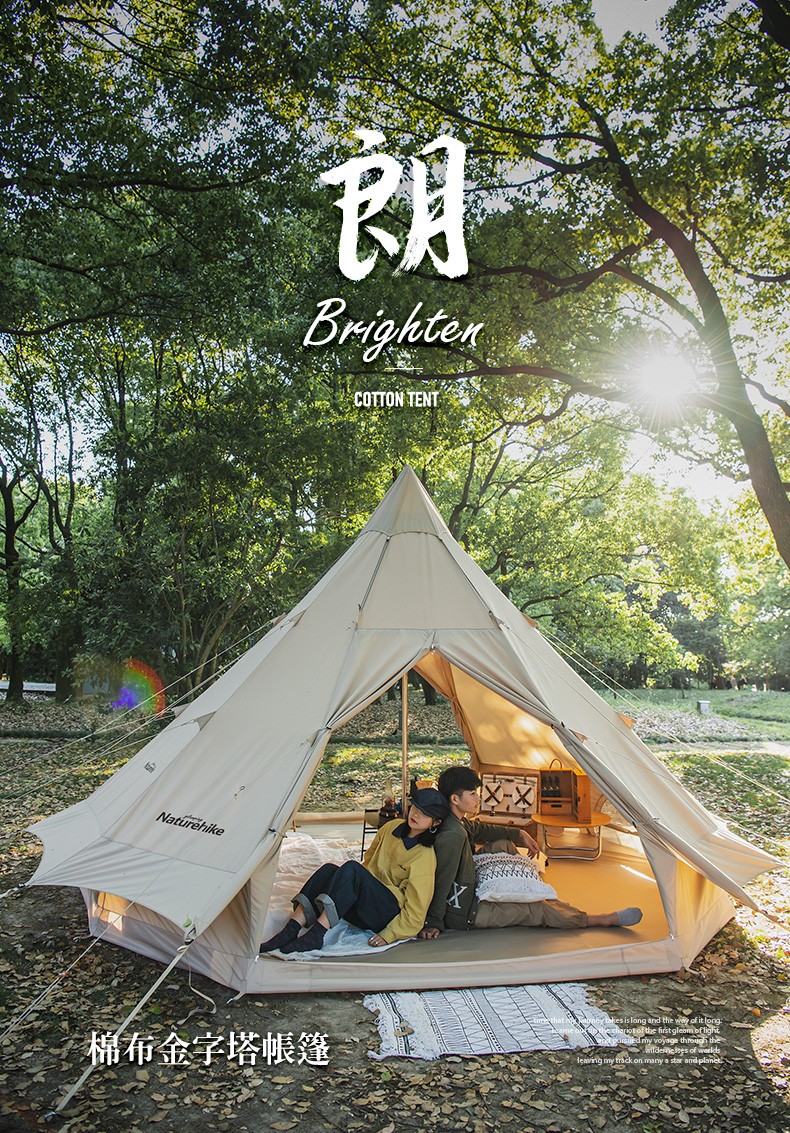 Naturehike挪客Glamping印第安户外大型多人野露营棉布金字塔帐篷