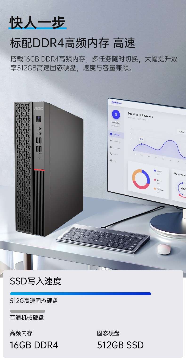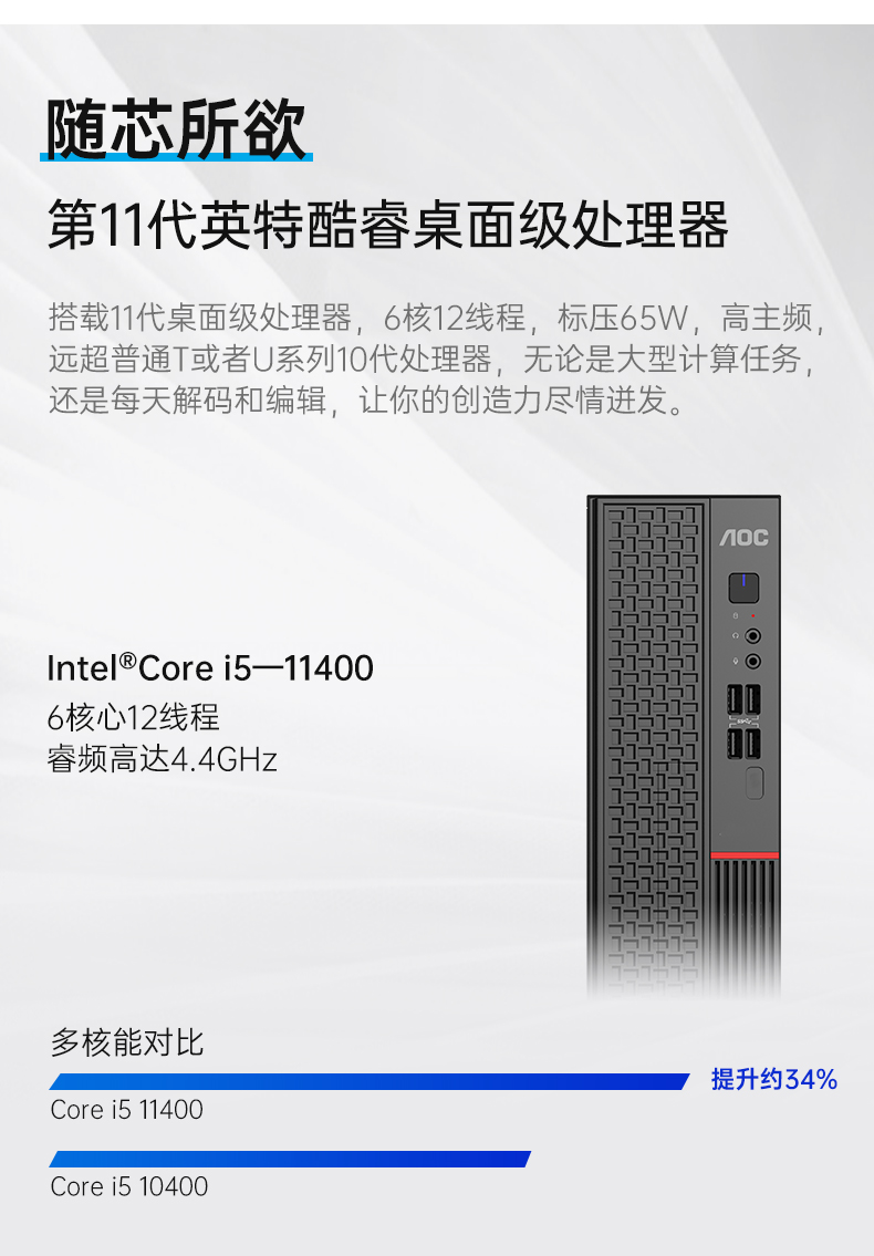 AOC A815H4012390台式计算机 I5-10400 16G 512G+1T硬盘 21.5寸显示器