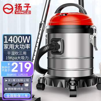 扬子(YANGZI)吸尘器家用美缝专用车用干湿吹工业桶式1400W大吸力车载吸尘机 15L