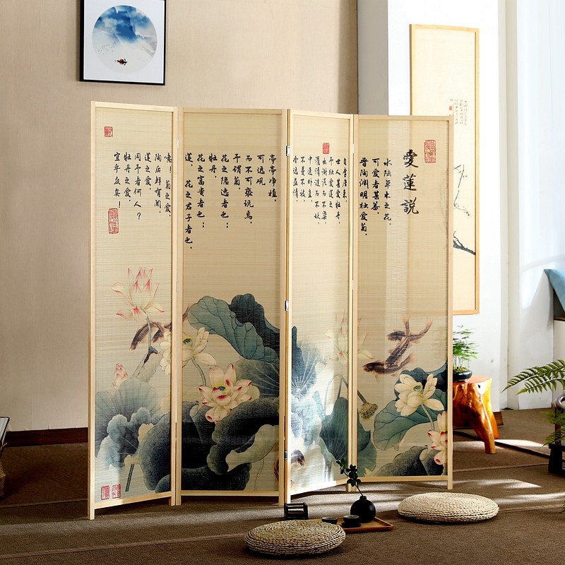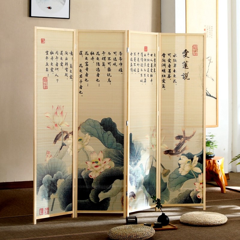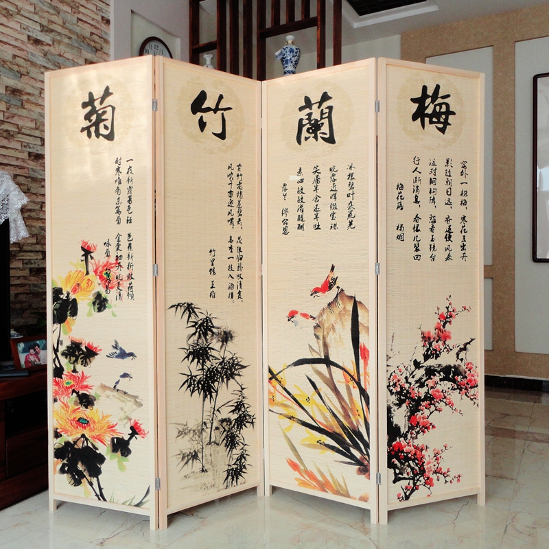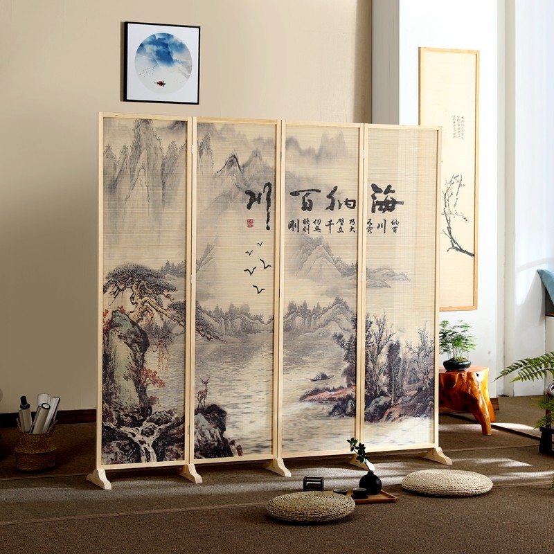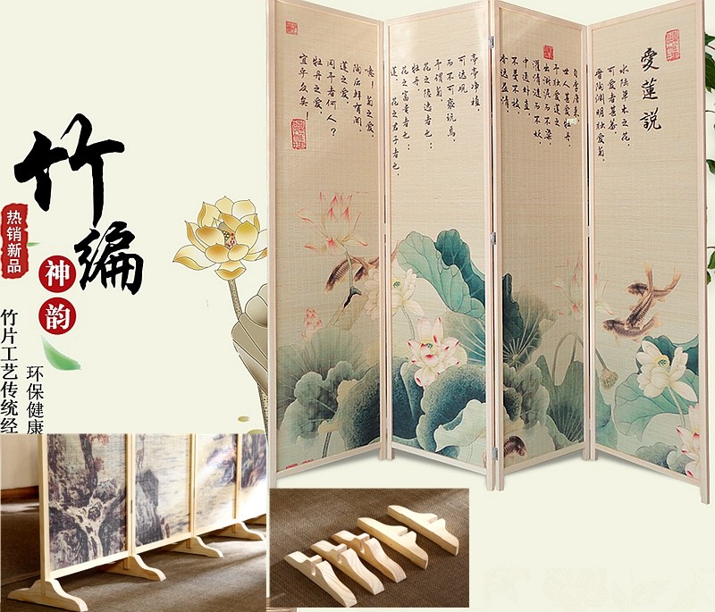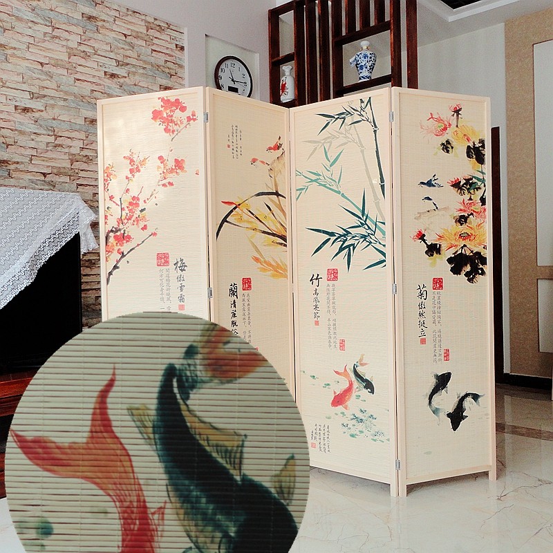商品名称:新款实木竹编屏风双面图日式入门隔断帘现代简约餐厅客厅折叠屏风