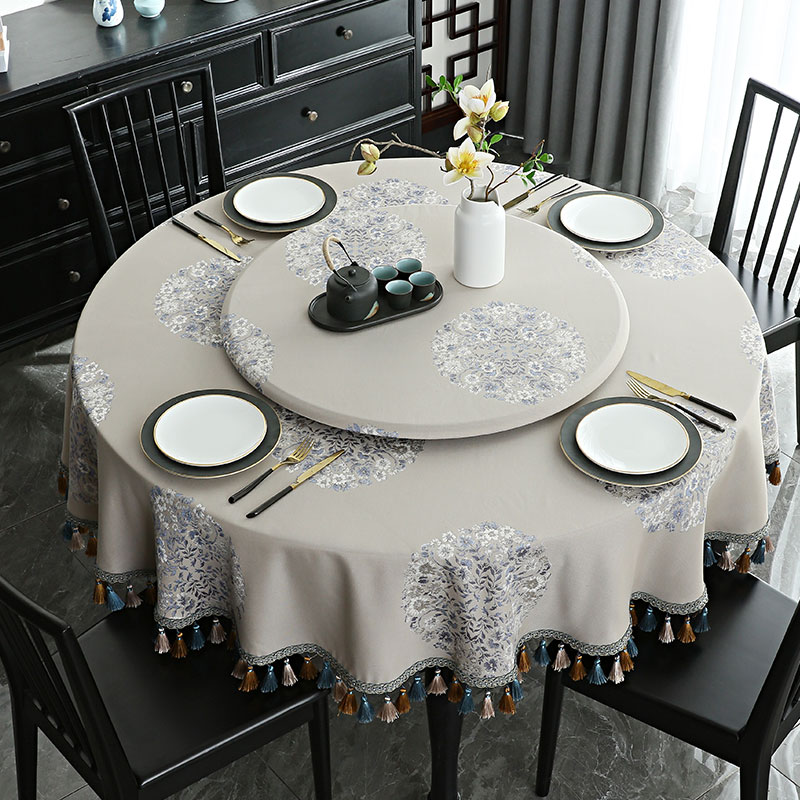 新中式餐桌布圆形桌布大圆桌带转盘双层圆几桌布高级感中国风盖布