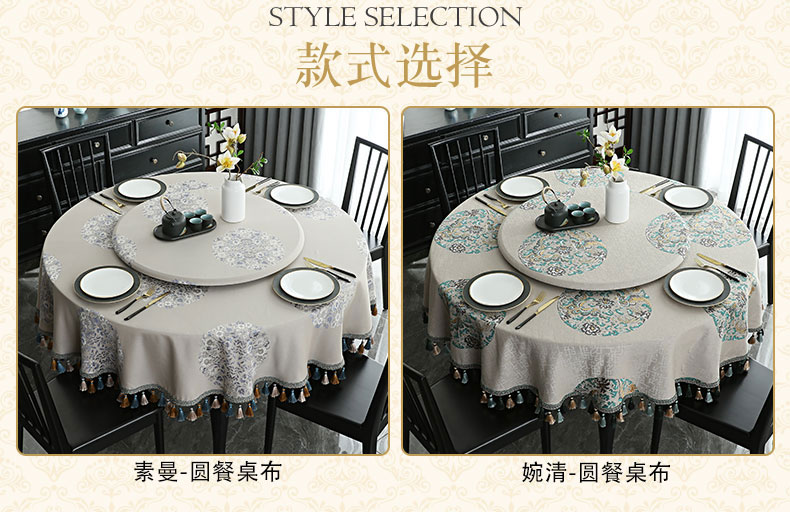 商品名称:新中式餐桌布圆形桌布大圆桌带转盘双层圆几桌布高级感中国风盖布