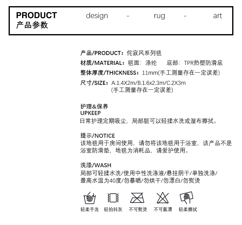 商品名称:【青山美宿】原创设计侘寂风地毯客厅茶几垫夏季简约卧室床边INS
