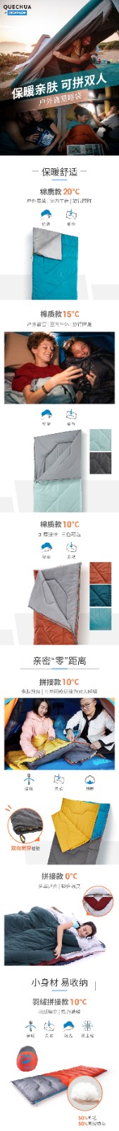 商品名称:迪卡侬睡袋大人户外露营秋冬厚款四季通用款羽绒双人酒店隔脏ODCF
