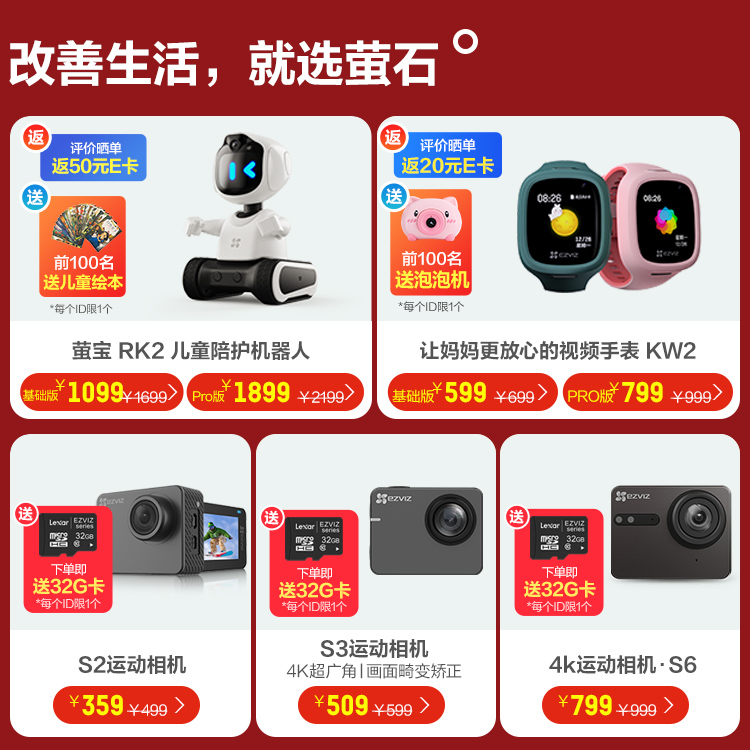 商品名称:萤石 (EZVIZ) S6运动相机 语音控制智能摄像机 4K高清 vlog拍摄 户外航拍潜水 防抖蓝牙遥控相机 太空灰