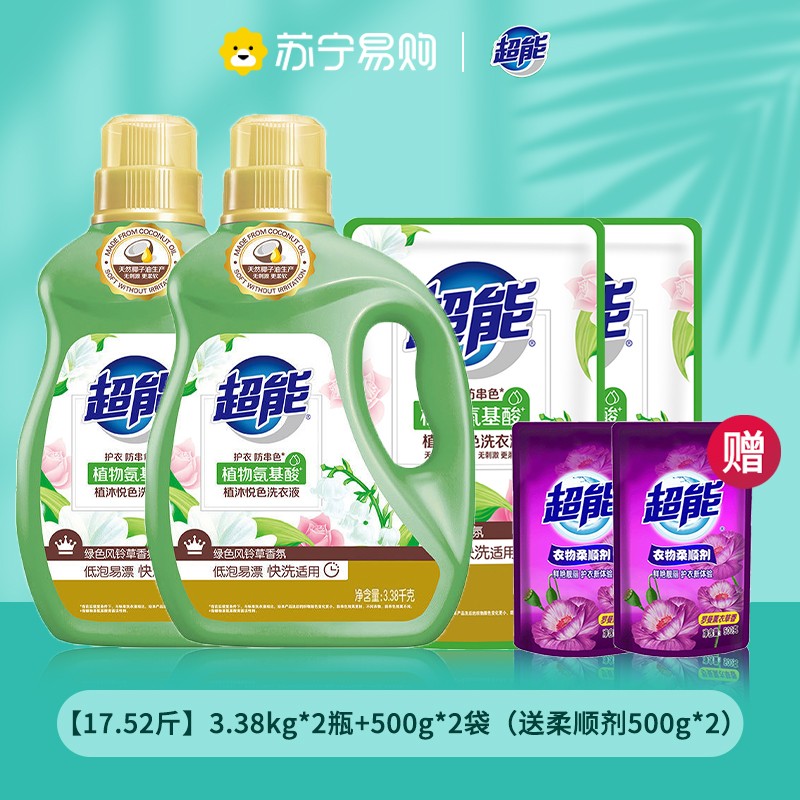 商品名称:超能植沐悦色洗衣液17斤整箱批家庭用促销组合实惠装香味持久1257