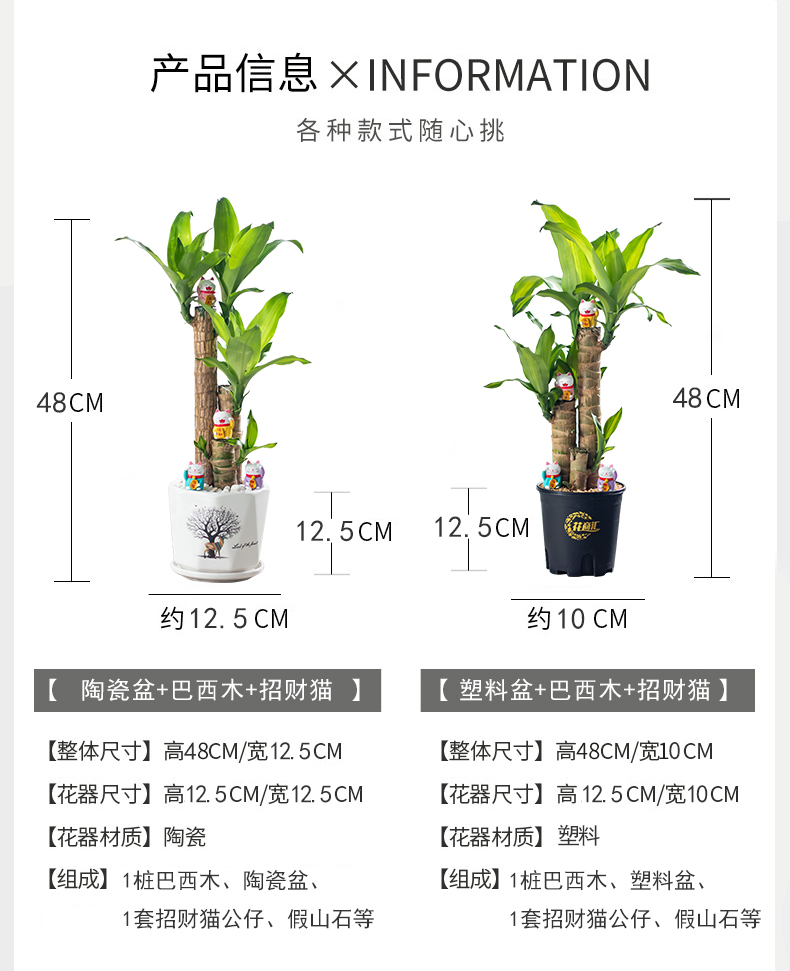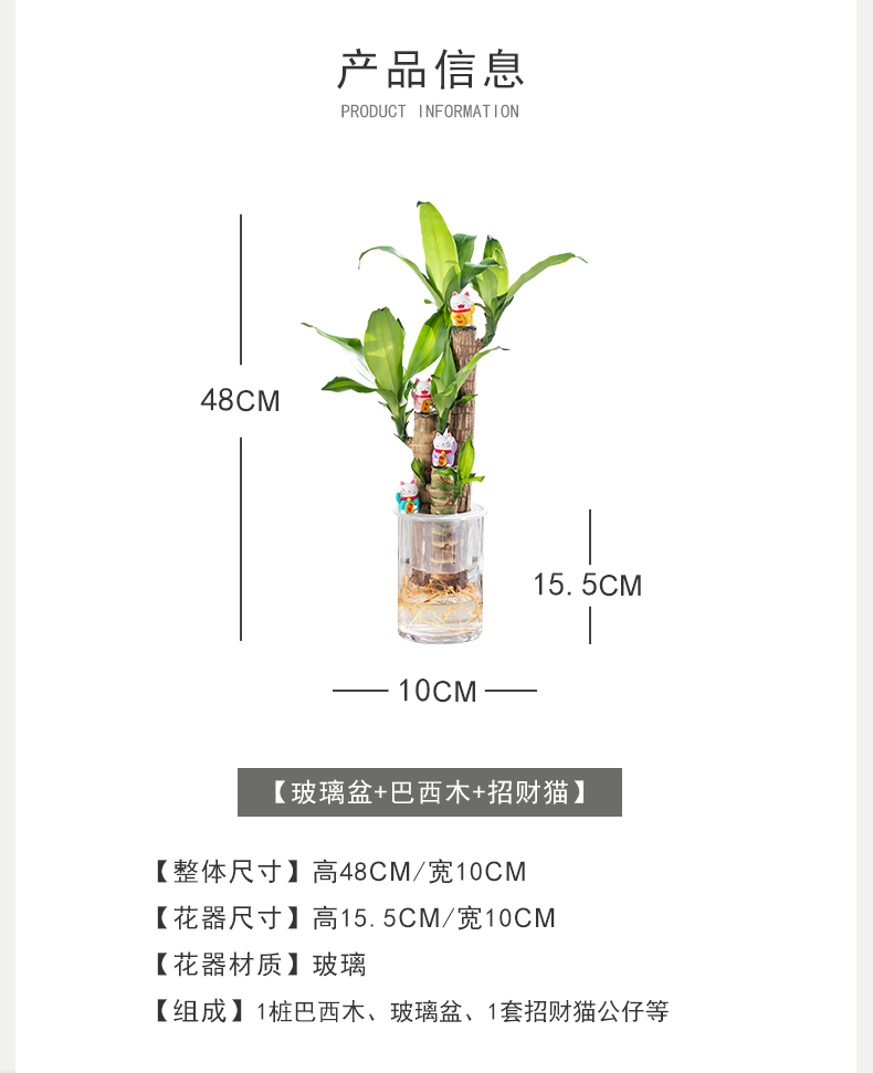 商品名称:巴西木幸运木开花 观叶植物室内盆栽营养液专用盆办公桌花卉绿植